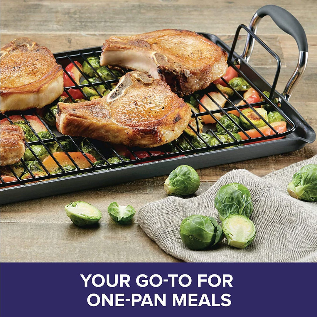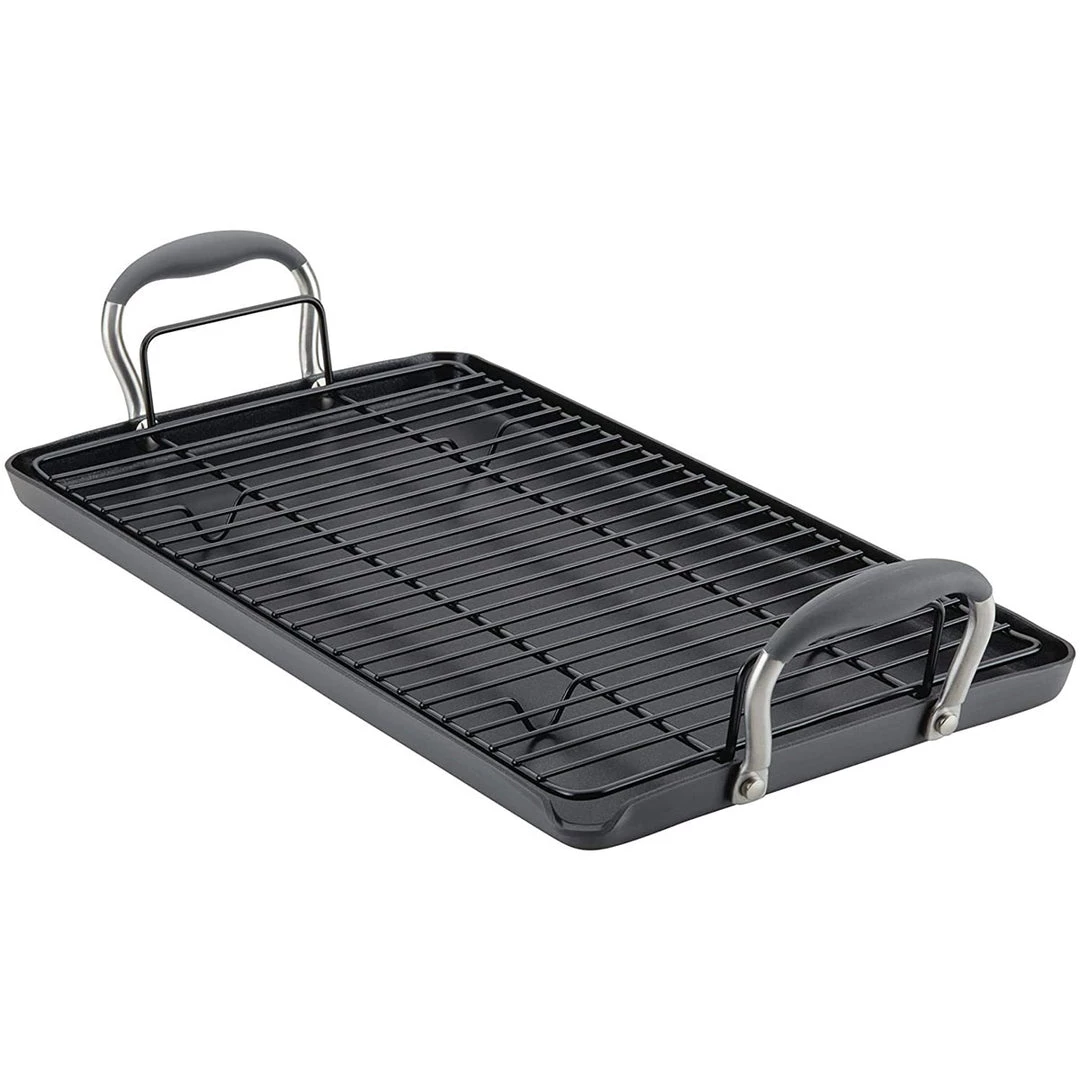 - COMFORT & CONTROL: Anolon SureGrip(r) handle provides a secure hold when moving griddle pan from stove to oven to table