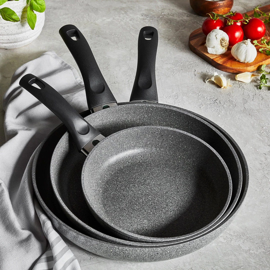 This handy set offers three pans you will use every day. The 8-inch fry pan is perfectly proportioned for cooking for one. Sear meat, sauté vegetables and cook eggs in the just-the-right-size 10-inch pan that is a meal prep staple. Or cook for a larger crowd without crowding your food in the 12-inch pan.