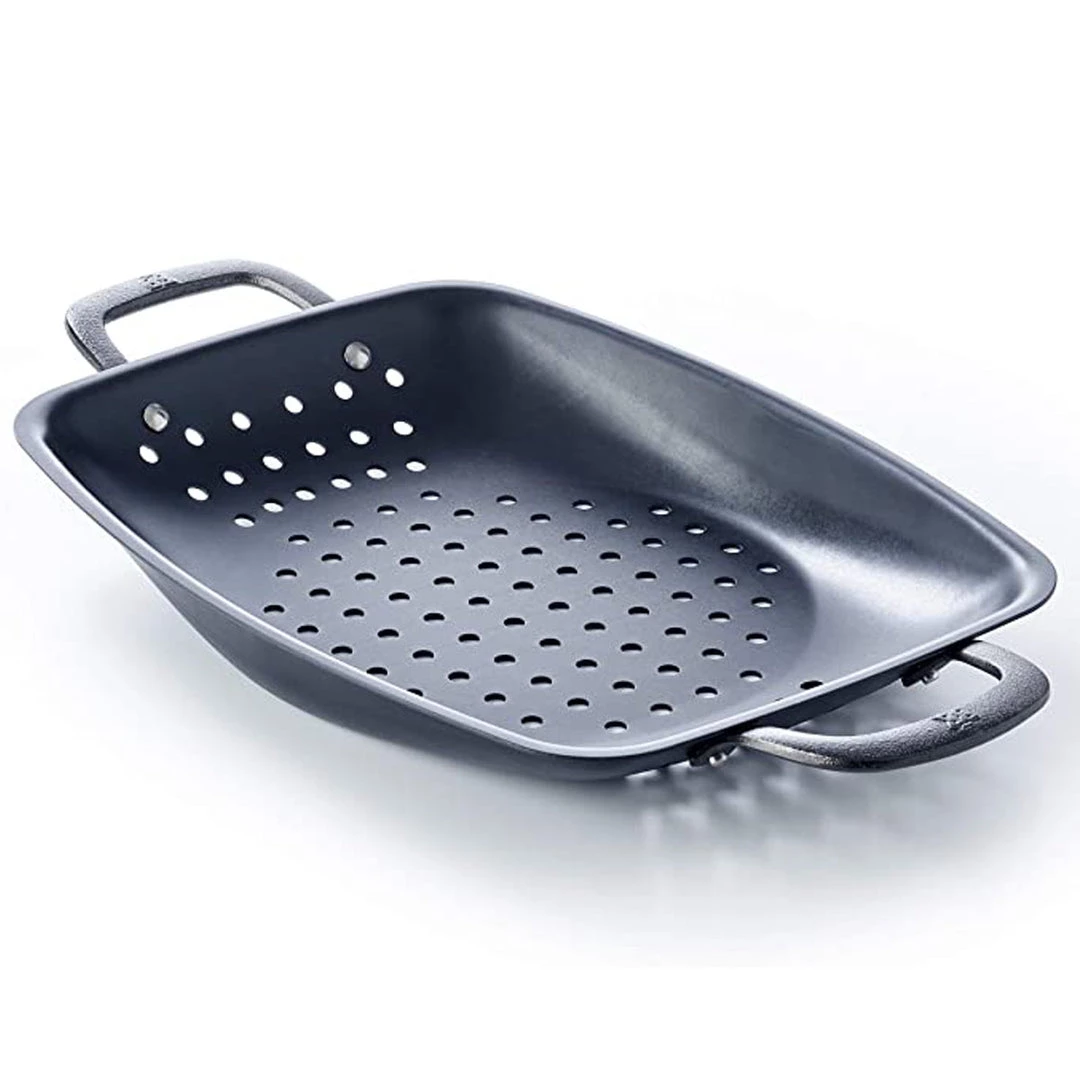- Perforated design lets in smoky grill flavors and allows fat to drip away