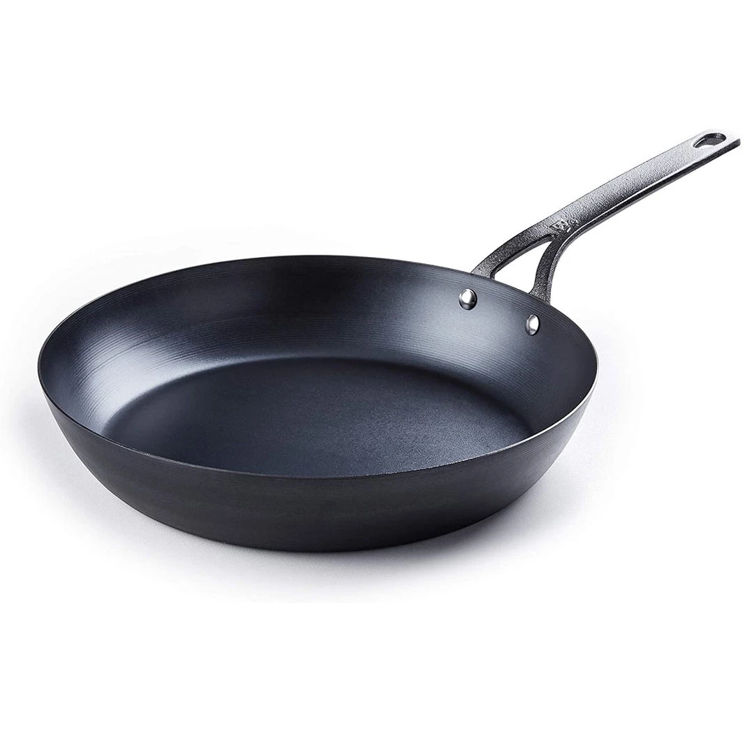 Ultra-durable and lightweight, Black Steel is perfect for people who want authentic, no-nonsense cooking. Winner of the 2019 Red Dot Award for design, this pre-seasoned carbon steel pan is ready to use right out of the box. Specially designed to develop a patina layer over time, this frying pan is naturally nonstick. The more you use it, the better it gets. Powerful enough for open flame cooking, this durable pan makes cooking outdoor easy. The cast iron handle offers a sturdy, durable grip. The pan ships with a thin silicone wax coating that’s much easier to remove than beeswax or grease, so it’s ready for cooking after a wash. Hand wash only.