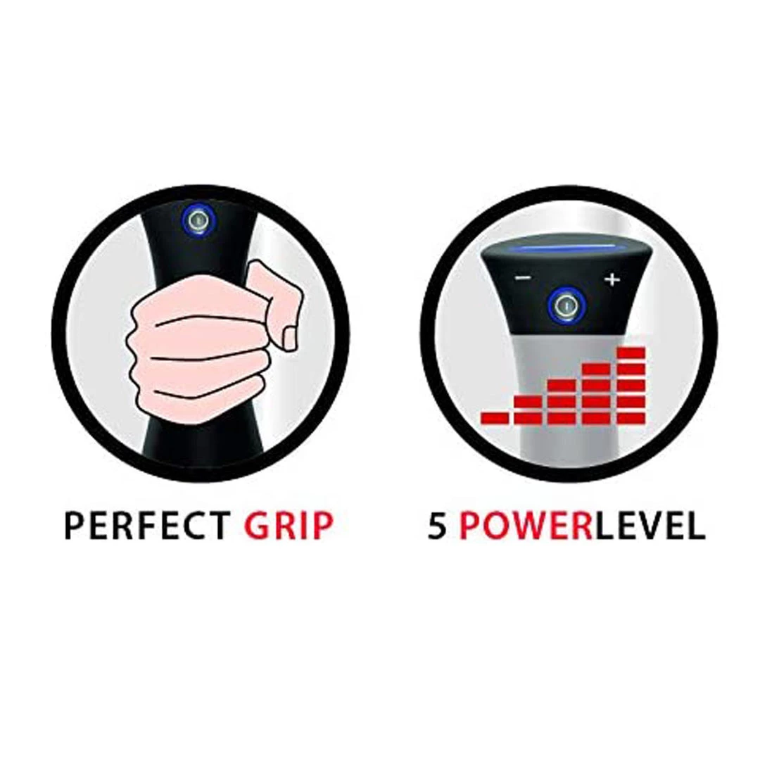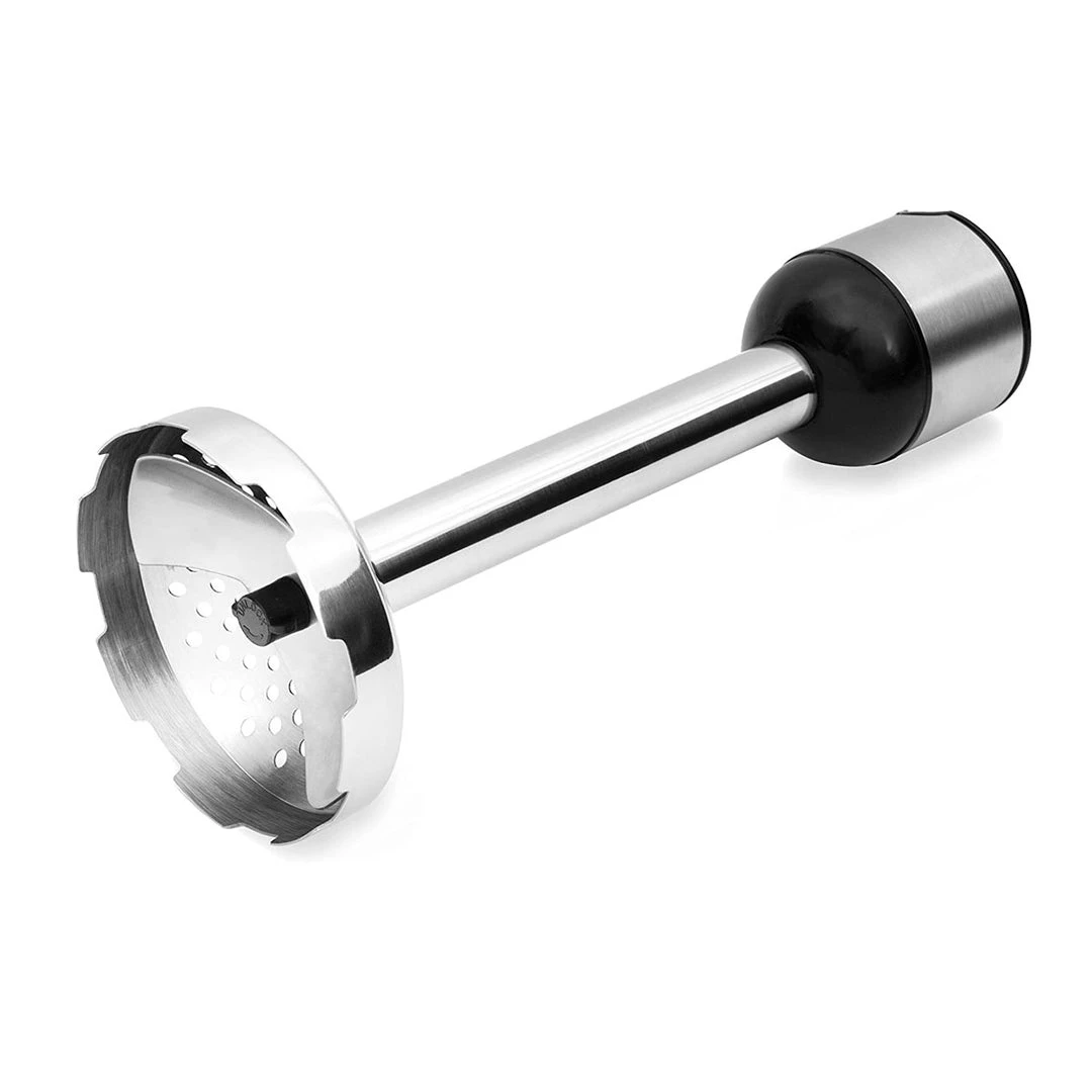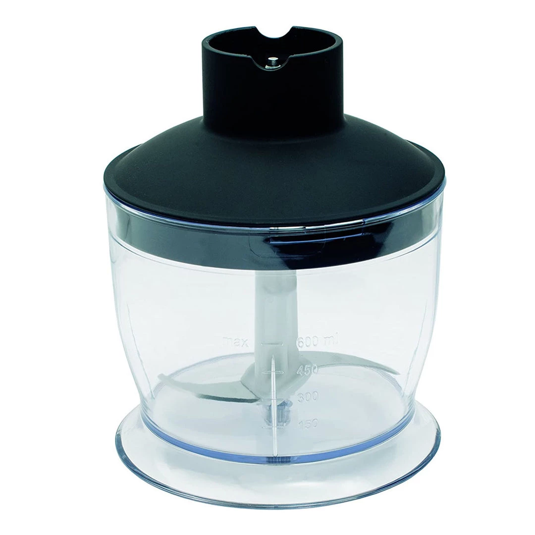 - Immersion blender with 4 pieces includes; 2.5 cup chopper; 8.5″ blending arm with blade; 9.5″ masher