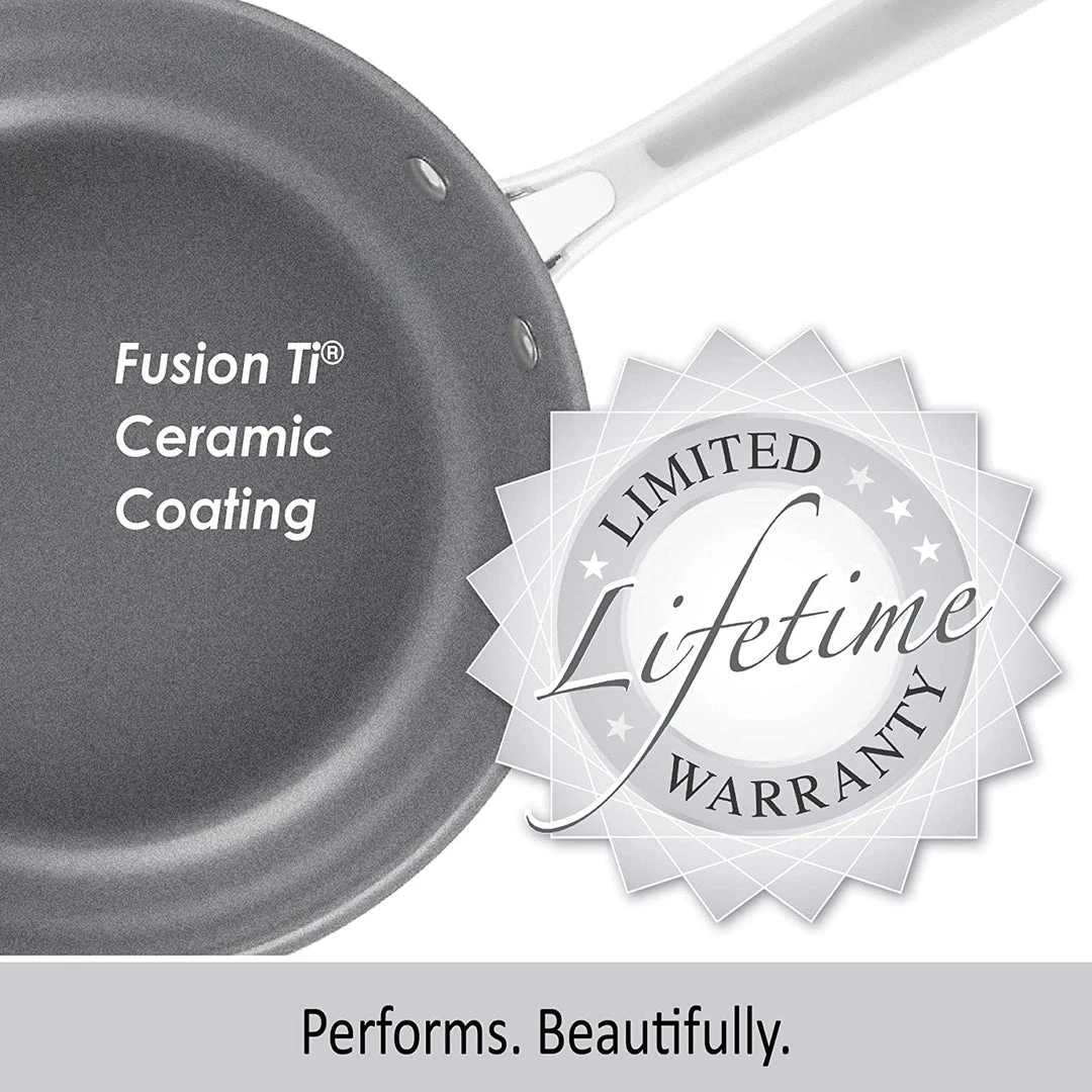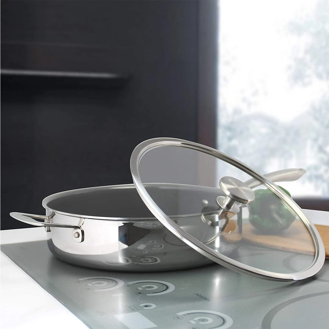 3.Clad™ Cookware is Chantal’s top-of-the-line! This world-class cookware features bonded, multi-ply, construction that transfers heat easily and efficiently. Made with gleaming Stainless Steel, stylish glass lids, and beautifully functional stay-cool handles, it cooks effortlessly on all cooking surfaces including Magnetic Induction. The 5 Quart Saute pan features a ceramic non-stick coating which allows for flawless omelets or crepes and really shines when searing fish or other delicate proteins.