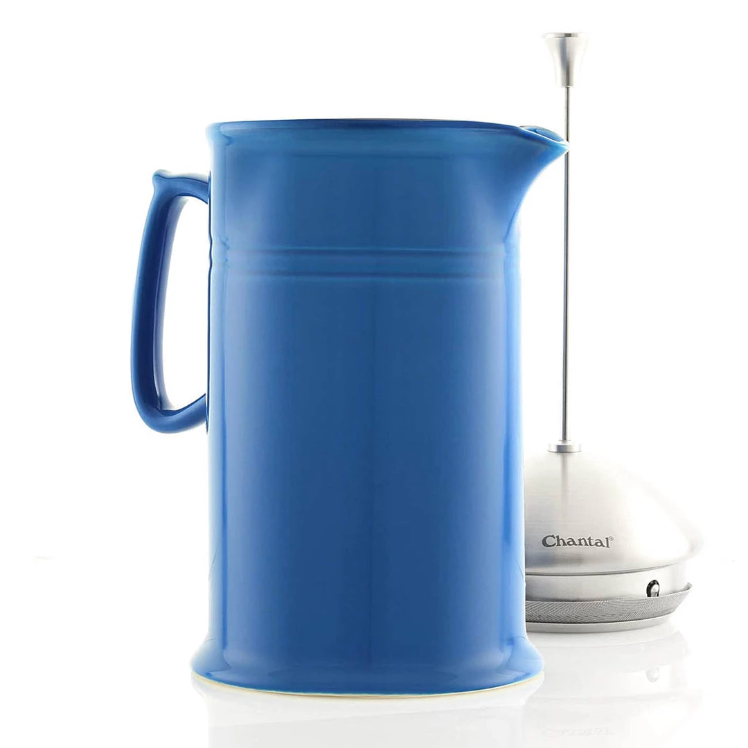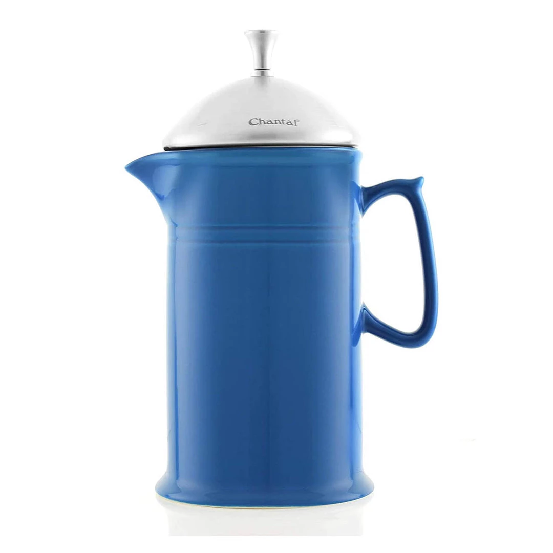 Brew your own coffee or steep your own tea with Chantal’s uniquely designed Ceramic French Press! An essential eye grabbing piece in any kitchen, Chantal is proud to introduce this item as part of the Craft Coffee Collection! The unique thumb handle facilitates easy handling and pouring when you are ready to serve. The design of the body has a maximum fill line that precisely lets you know how much water to put into the carafe, preventing spillage. Stainless steel plunger includes a fine mesh screen which prevents coffee or tea sediments from escaping. The ceramic body is sure to keep your drink warm or cold, holding the temperatures longer than glass or stainless steel!
