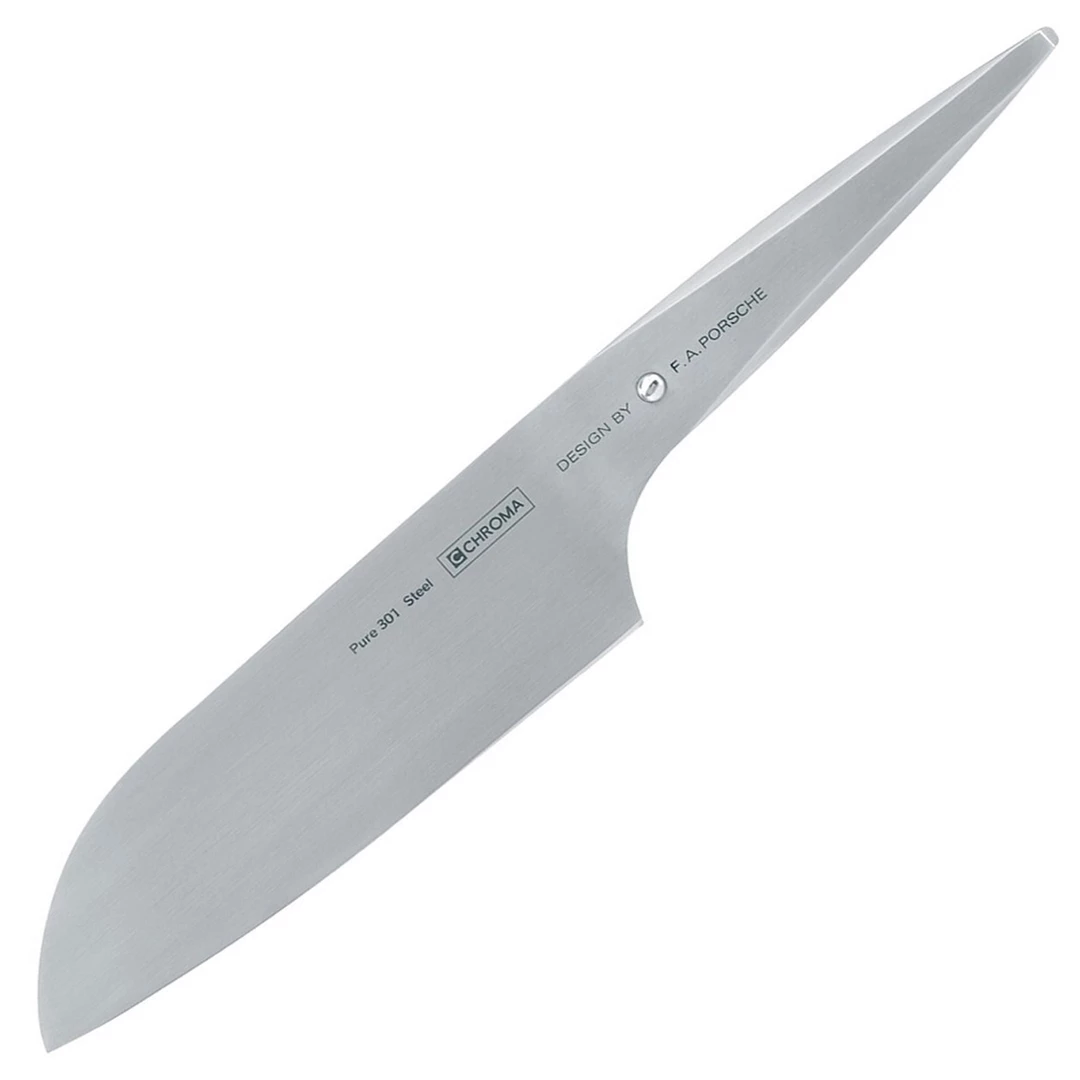 A sharp and ergonomic knife is perhaps the most important and certainly the most favorite tool of a Chef, regardless if he is a professional or a hobbyist. Japanese knives have achieved global recognition for their quality, as the Japanese hold a long tradition in metallurgy. The Japanese metallurgists have elevated the forging and sharpening of the blade into a form of art for hundreds of years, since the era of the notorious Katana swords. On the other hand, Europeans and Americans also make excellent knives, often characterized by superior ergonomics and design, but rarely distinguished for the hardness and sharpness of their blade. The type 301 knife series by Chroma bridges the gap between Japanese tradition and the European design. Chroma type 301 cutlery are designed by F.A. Porsche and they stand out for their unique design and their practical function. Porsche Design worked closely with chef of the decade, Jörg Wörther, in order to develop the final shape of the handle, which is optimized for maximum usability. The result is a precision cutting tool. Each knife is carefully weighted to ensure perfect balance in the hand and in combination with the highly ergonomic handle, it feels like an extension of the user’s hand