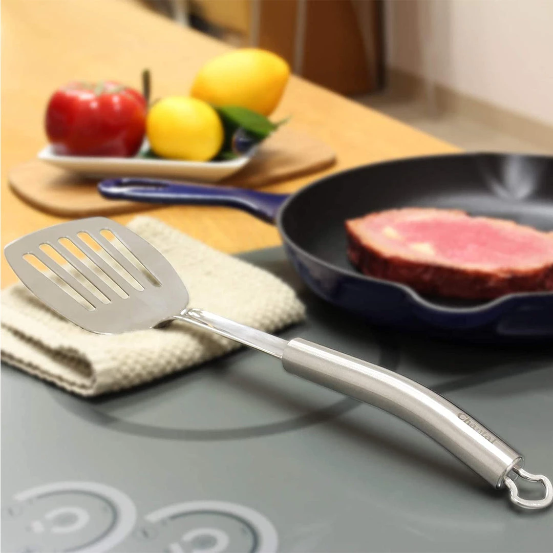 - Chantal’s Stainless Steel Kitchen tools are the ultimate in functionality, comfort, and beauty; the slotted turner is great for getting under foods that may cling to the surface