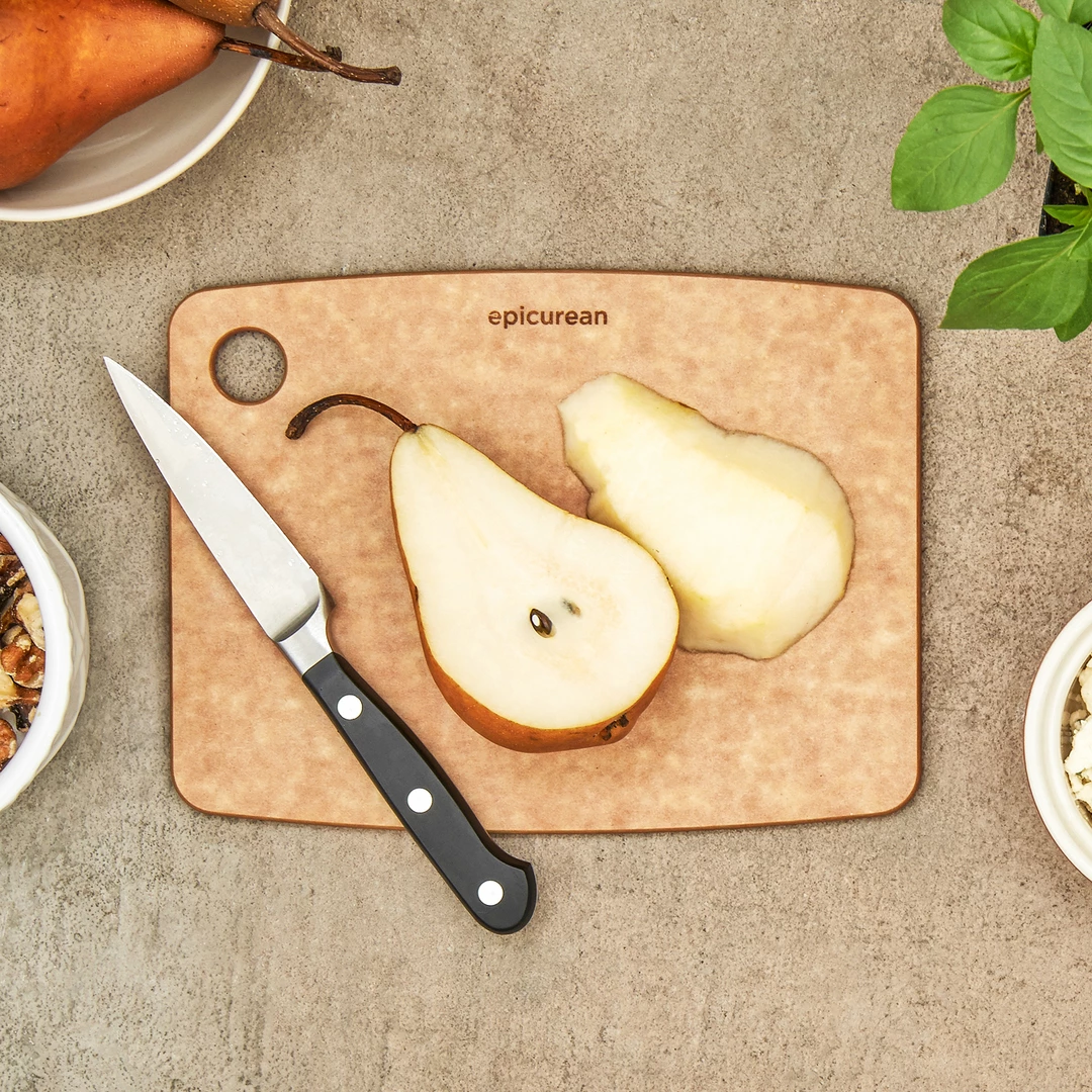 Lightweight Epicurean Kitchen Series Cutting Boards are designed for everyday use and effortless handling. Their thin profile and built-in utility hole make them easy to store. Available in multiple sizes, these versatile cutting boards are perfect for the busy kitchen. The Kitchen Series cutting boards are made using 1/4 inch material.