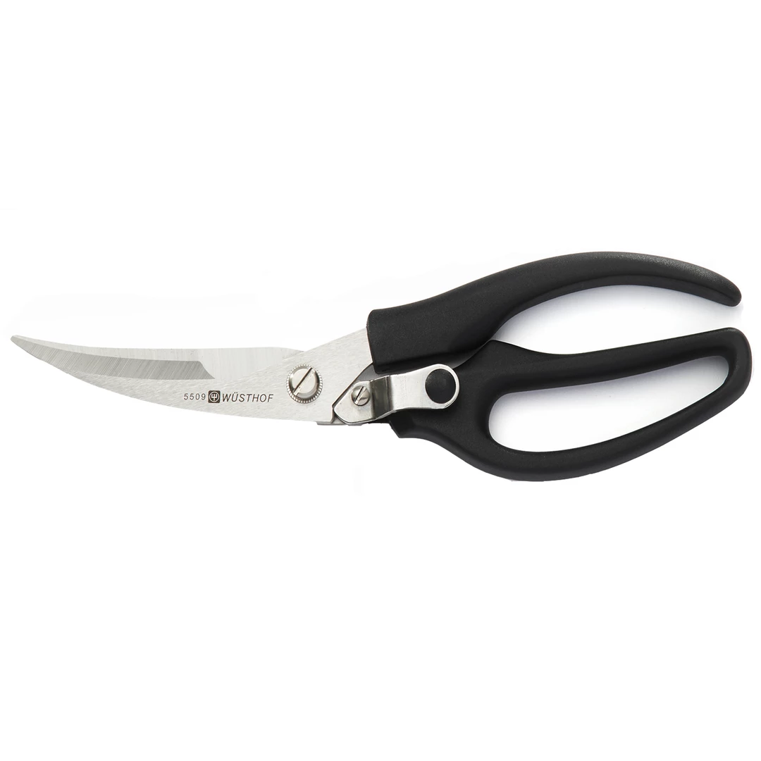 Poultry shears are the ideal helper for carving. Ergonomically shaped handles provide for a secure grip. Slightly curved, sharp stainless steel blades.