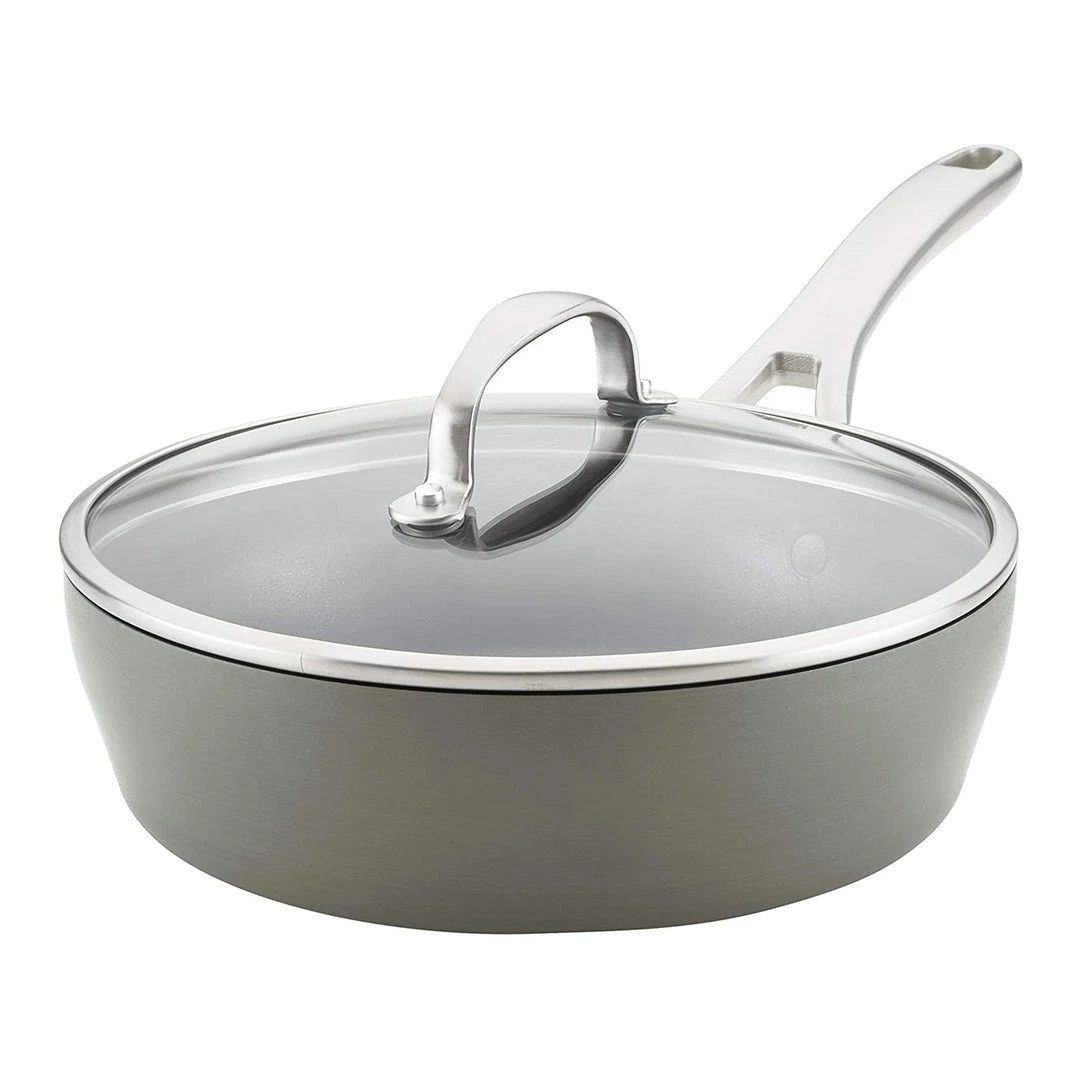 For high-quality performance, Durable construction, and the everyday convenience of infinity slide(tm) nonstick, reach for the Anolon allure 3-quart hard-anodized Nonstick sauté pan. Designed for long lasting performance, This versatile sauté pan is constructed from heavy gauge hard-anodized aluminum that’s twice as strong as stainless steel for enhanced durability. Sapphire-reinforced Infinity slide nonstick provides effortless food release that lasts 16x longer than traditional nonstick and 80x longer than typical ceramic cookware, and the double-riveted, brushed stainless steel handle and convenient helper handle are oven safe to 500°f. The easy-clean, flat rivet unity surface prevents sticky sauces and rich foods from building up, and dishwasher-safe, fat-free nonstick inside and out keeps your cookware looking new. A shatter-resistant glass lid seals in heat and flavor, and Anolon allure features a unique, curved silhouette to complement contemporary kitchen designs and provide performance with flair. Stylish, durable, and reliable, Anolon allure comes with a hassle-free Lifetime. When you live to cook, your cookware should be ready for the journey and Anolon delivers on that promise with the Anolon allure 3-quart hard-anodized Nonstick sauté pan.