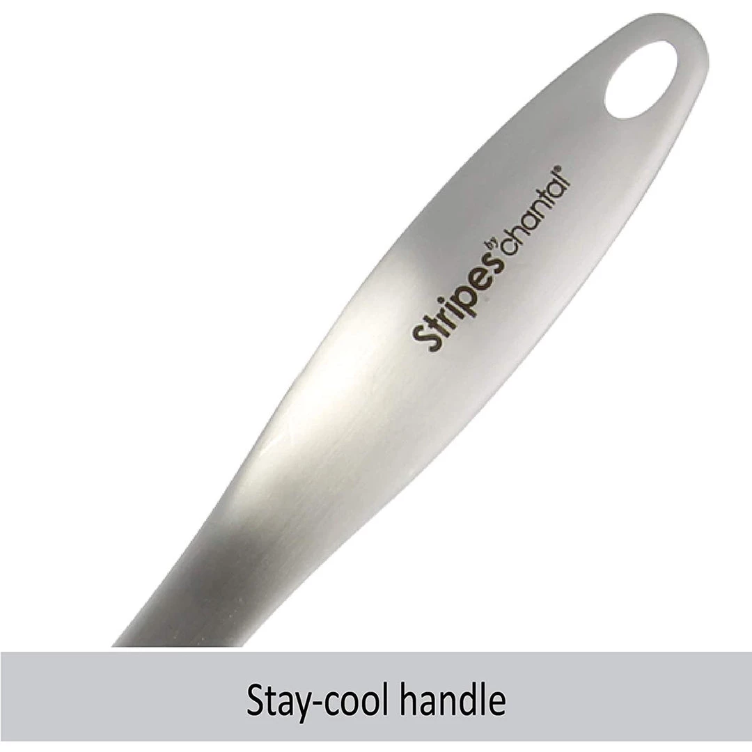 - Add a “Stripe” of color to your kitchen! The Stripes cookware line from Chantal is made with heavy-duty commercial grade stainless steel with a subtle, yet distinct, strip of color on the exterior. It is perfect for the young aspiring chef who needs top-quality cookware or a more experienced chef who just wants a pop of color on their stove. Heavy-duty commercial grade construction that will hold up to the dents & dings of everyday use. Made with healthy 21/0 steel that has no nickel content and contains no toxins; the best metal composition for
