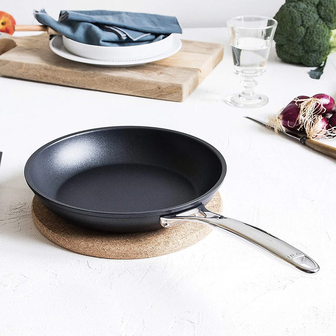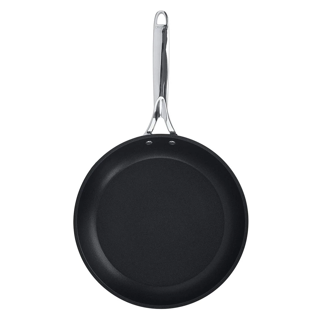 Whip up a flavorful stir-fry, savory sauce, or succulent tilapia fillet with this Castel Pro Ultralu fry pan from Cristel. This line was imagined and designed in collaboration with renowned Michelin-starred chefs, so each product meets the requirements of the greatest professionals. Featuring a three-ply design reinforced with an anodized aluminum core, this pan provides exceptional thermal efficiency, even heat, and no hot spots. The highly responsive cooking surface with Exceliss non-stick coating without PFOA heats up and cools down rapidly, providing excellent control on the stovetop. Fixed to the body of the pan thanks to stainless rivets, the solid, stainless steel handle does not retain heat, making for a safe and comfortable grip. Cristel ULTRAPLYlight technology allows gentle cooking techniques such as fat-free and low-temperature cooking, which preserve vitamins, the texture of the food, color, and enhance flavors. The pan is compatible on all range types including gas, electric, halogen and ceramic, is induction ready, and oven safe to 350 degrees F. When you’re finished cooking your favorite meals, simply place this pan in the dishwasher for easy cleanup.