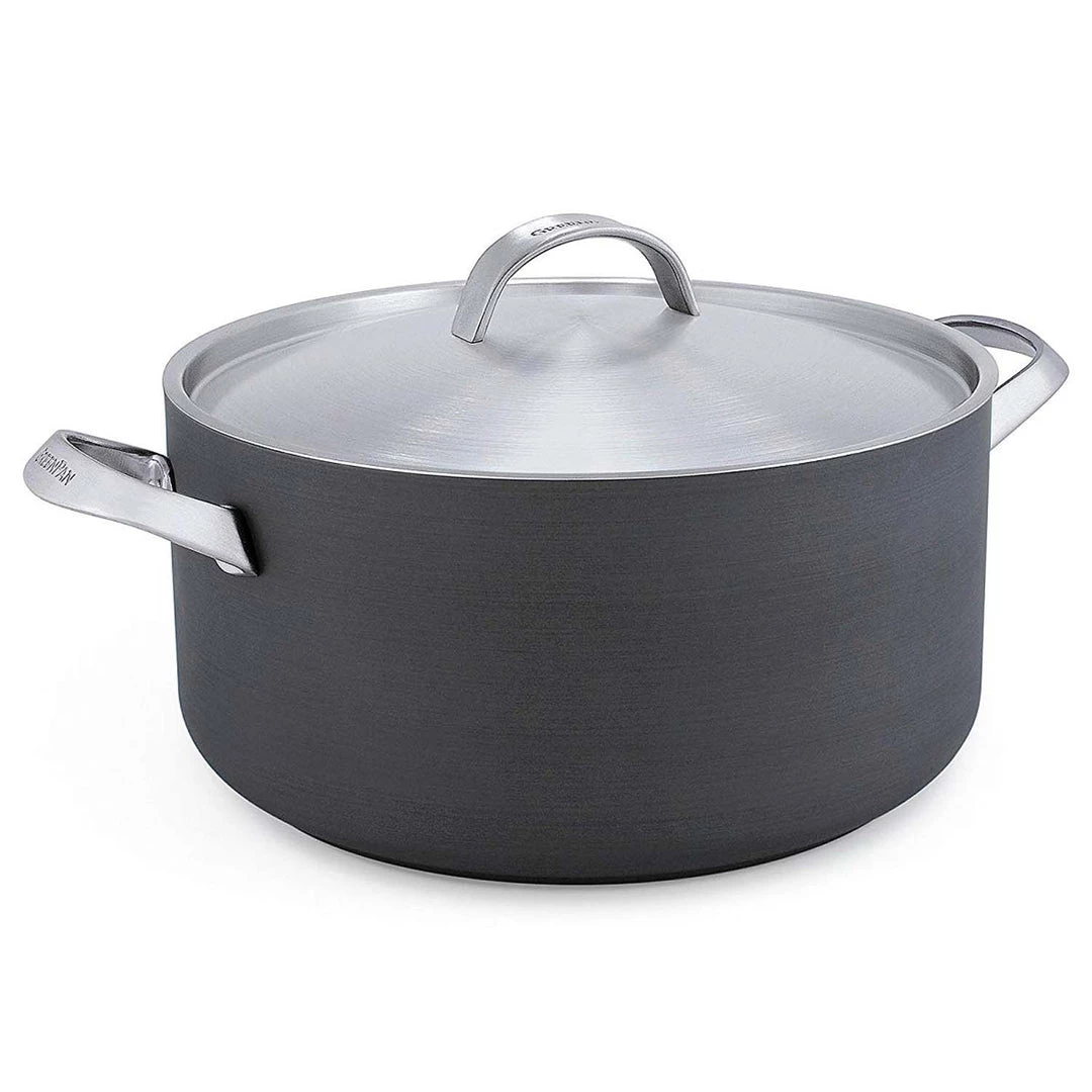 The GreenPan Paris collection is the perfect mix of class and convenience. These pots and pans are made of durable hard anodized aluminum for excellent heat conduction with a matte dishwasher safe coating to make clean up even easier. Eye catching ergonomic stainless steel handles are riveted for a strong hold, allowing for oven use and are designed for a comfortable grip. Each piece is coated with Thermolon Marathon healthy ceramic non-stick, allowing for excellent food release and a healthy cooking surface for every meal you create. Prime functionality and modern design are key for this collection, perfect for every kitchen!