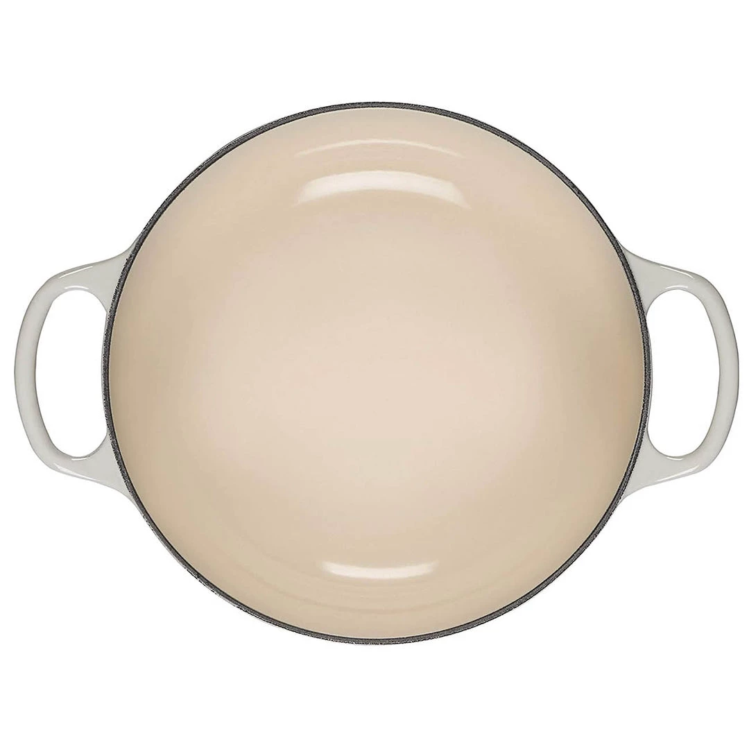 - Light-colored smooth interior enamel allows easy monitoring of cooking progress