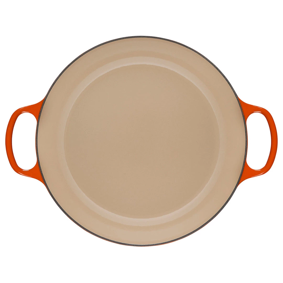 - Sand-colored interior enamel has a smooth finish that promotes caramelization, prevents sticking and resists stains