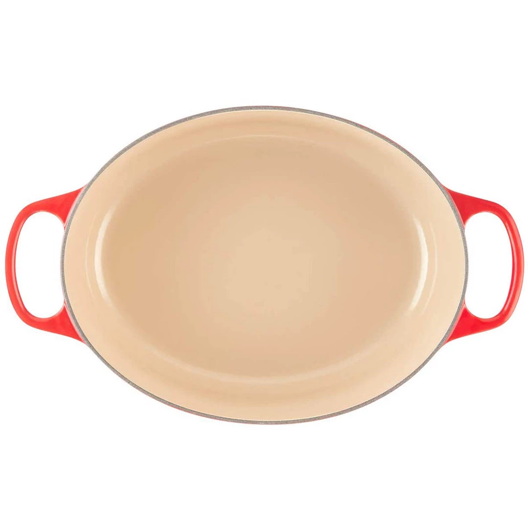 The iconic Le Creuset Oval Dutch oven is indispensable in the kitchens of home cooks and professional chefs alike. Long recognized for its strength and durability, cast iron is the prime material for slow-cooking, braising, and roasting, thanks to its ability to maintain even and consistent heat. The enameled Dutch oven needs no seasoning, and it’s suitable for both stovetop and oven use. Le Creuset produced the first enameled cast iron cookware nearly a century ago, and the original foundry still operates today, where 15 skilled artisans hand-inspect each piece. This tradition of the finest culinary craftsmanship, combined with the latest innovations in comfort and functionality, makes Le Creuset unsurpassed in both beauty and quality.