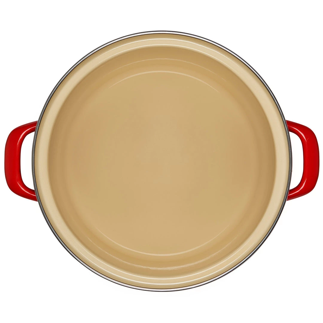 - Constructed from heavy-gauge carbon steel with a durable and colorful porcelain enamel finish