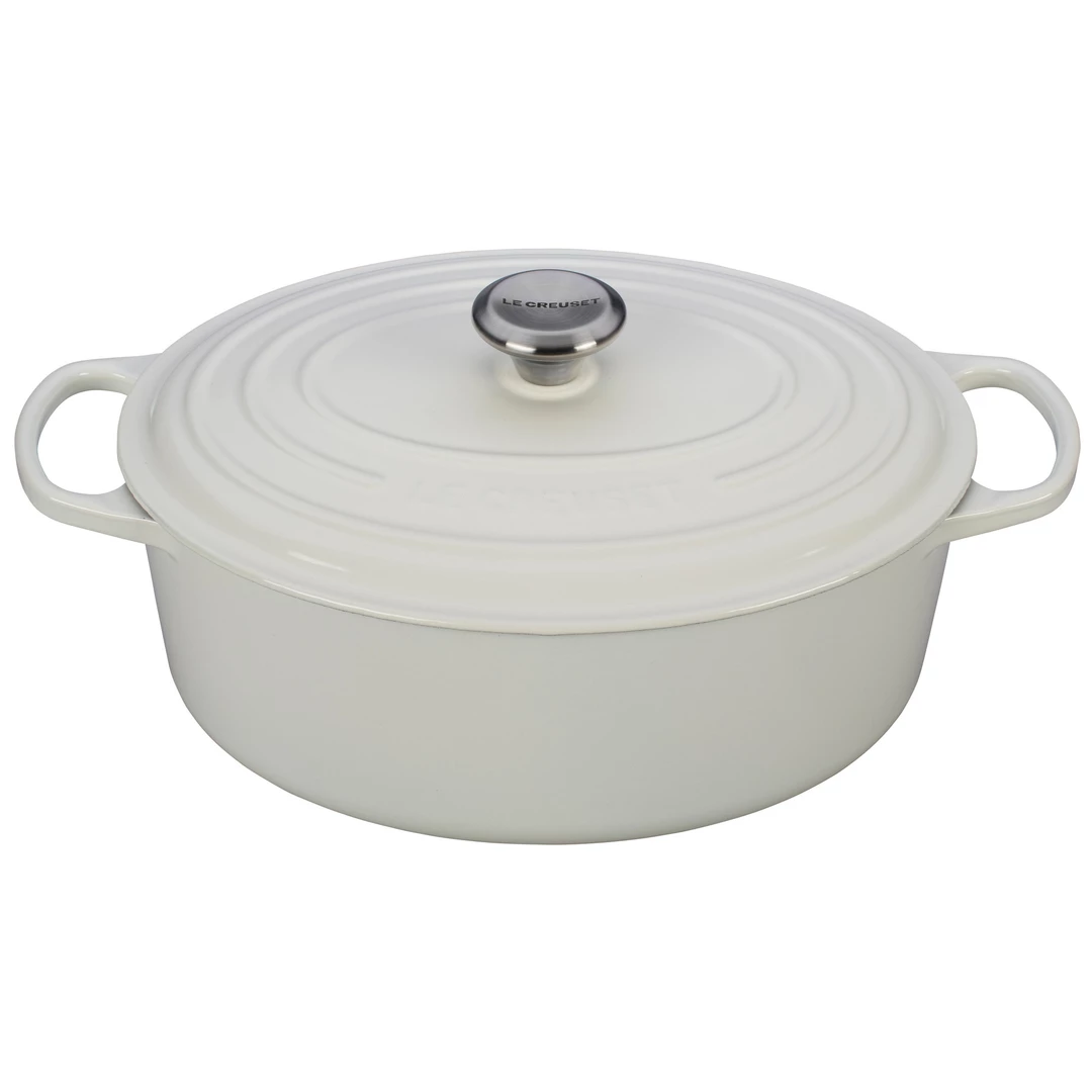 The iconic Le Creuset Dutch oven is indispensable in the kitchens of home cooks and professional chefs alike. Long recognized for its strength and durability, cast iron is the prime material for slow-cooking, braising and roasting, thanks to its ability to maintain even and consistent heat. The enameled Dutch oven needs no seasoning, and it’s suitable for both stovetop and oven use. The oval shape is particularly suited to longer cuts of meat or poultry.