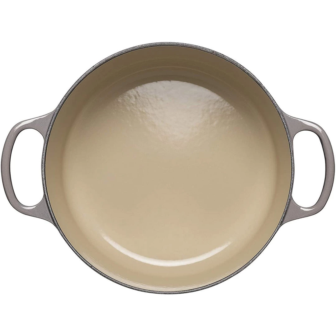 - Sand-colored interior enamel has a smooth finish that promotes caramelization, prevents sticking and resists stains