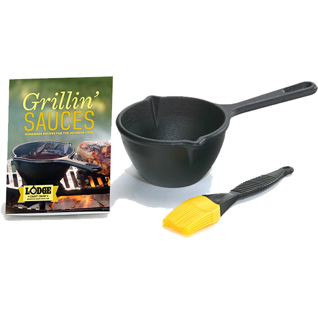 Includes the 15oz. Lodge Melting Pot, a silicone brush for basting your grill top favorites, and cookbook “Grillin’ Sauces,” with ten fabulous marinade and sauce recipes. Silicone basting brush is heat resistant to 400º F and is dishwasher safe.