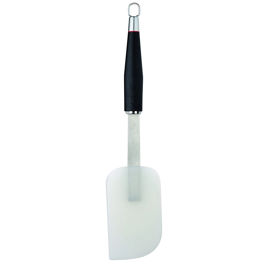 The award-winning experience of a master chef and 75 years of product design knowledge have merged to offer pastry instruments that please the most demanding palates World renowned Italian pastry chef Iginio Massari has long been an icon of the pastry profession and is known for his discipline, dedication and honesty. Creating a line of pasty tools that would live up to the name and standards of “the master of the Italian pastry masters” Iginio Massari was no small task. The designers at Ghidini Cipriano of Italy sought to honor Chef Massari’s baking and pastry philosophy by recreating tools that would be available to all those that seek to bake and create, to discover new techniques, and who love confectionary arts. Thus the “la Pasticceria di Precisione” Iginio Massari collection was born. Each instrument in the collection is precisely designed with elegant lines that honor the accuracy and creativity of Chef Massari. The pastry chef’s tool collection features only the best materials: steel, silicone, polyurethane resins, selected woods – each carefully chosen to endure the usage, heat and time that is inherent to baking and decorating. This flexible spatula is made from durable stainless steel and silicone. The handle features a non-slip ergonomic grip for comfort in a variety of tasks. The end of this spatula feature a hanging loop for convenient storage.