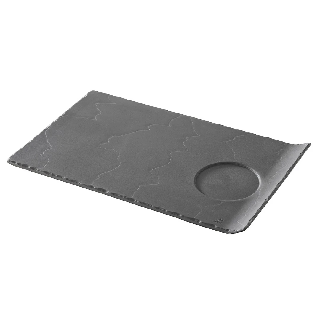 his dessert tray has a two-format insert adapted to a crumpled espresso or cappuccino cup, and is perfect for a coffee or tea with mini desserts. You can also use it as a dessert plate or for a starter, and you can add a sauce or side-dish to your main dish in a small bowl or colourful cup! Practical and easy to use, this slate-effect porcelain tray is ideal for serving cappuccinos, nibbles, starters or other dishes. Made from Revol ceramics, this dessert tray can also be used to serve a muffin or chocolate fondant with a skewer of fruits: you can cook and serve on the same dish.