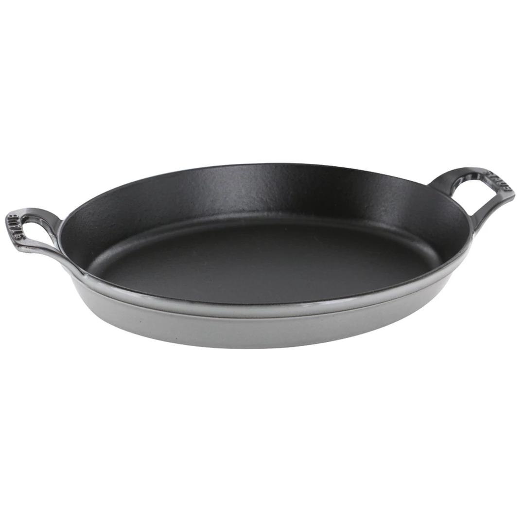 For centuries, cooks have taken advantage of the natural heat retention and redistribution properties of cast iron. Staub builds on this tradition with our enameled cast iron cookware. Black matte enamel inside and cooking surface creates a culinary advantage for better browning, braising, and roasting. Colorful enamel outside adds flare to your kitchen and table.