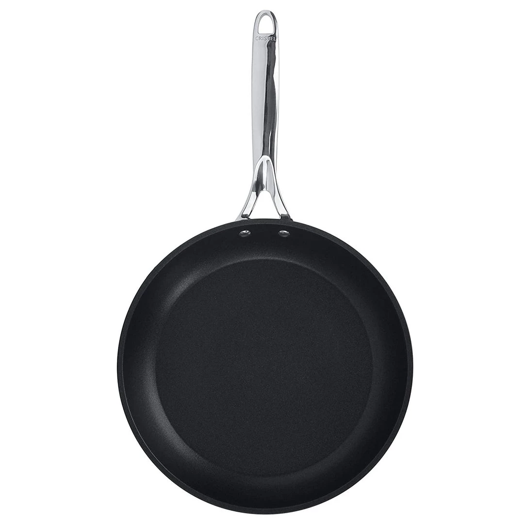 Whip up a flavorful stir-fry, savory sauce, or succulent tilapia fillet with this Castel Pro Ultralu fry pan from Cristel. This line was imagined and designed in collaboration with renowned Michelin-starred chefs, so each product meets the requirements of the greatest professionals. Featuring a three-ply design reinforced with an anodized aluminum core, this pan provides exceptional thermal efficiency, even heat, and no hot spots. The highly responsive cooking surface with Exceliss non-stick coating without PFOA heats up and cools down rapidly, providing excellent control on the stovetop. Fixed to the body of the pan thanks to stainless rivets, the solid, stainless steel handle does not retain heat, making for a safe and comfortable grip. Cristel ULTRAPLYlight technology allows gentle cooking techniques such as fat-free and low-temperature cooking, which preserve vitamins, the texture of the food, color, and enhance flavors. The pan is compatible on all range types including gas, electric, halogen and ceramic, is induction ready, and oven safe to 350 degrees F. When you’re finished cooking your favorite meals, place this pan in the dishwasher for easy cleanup.