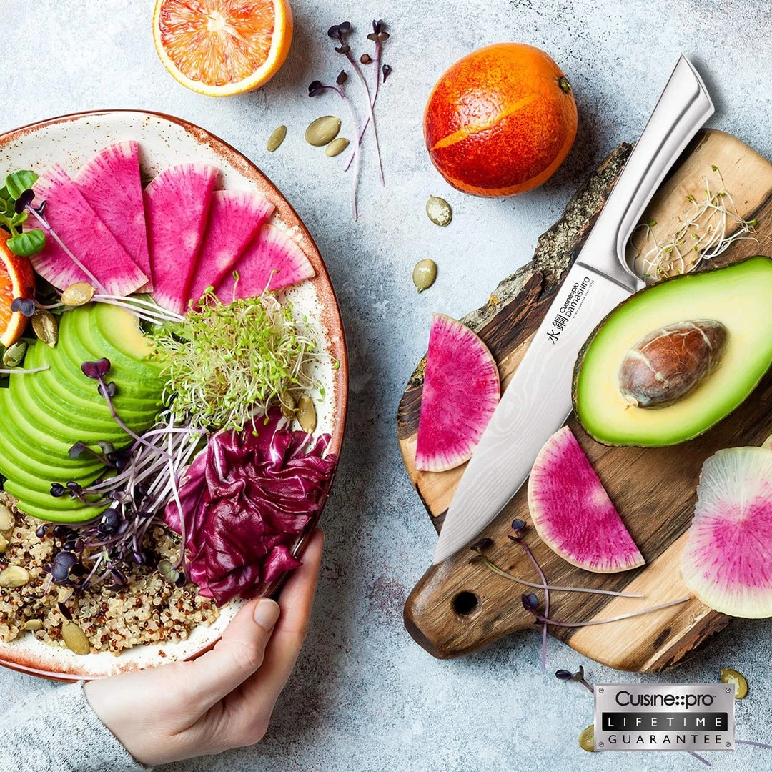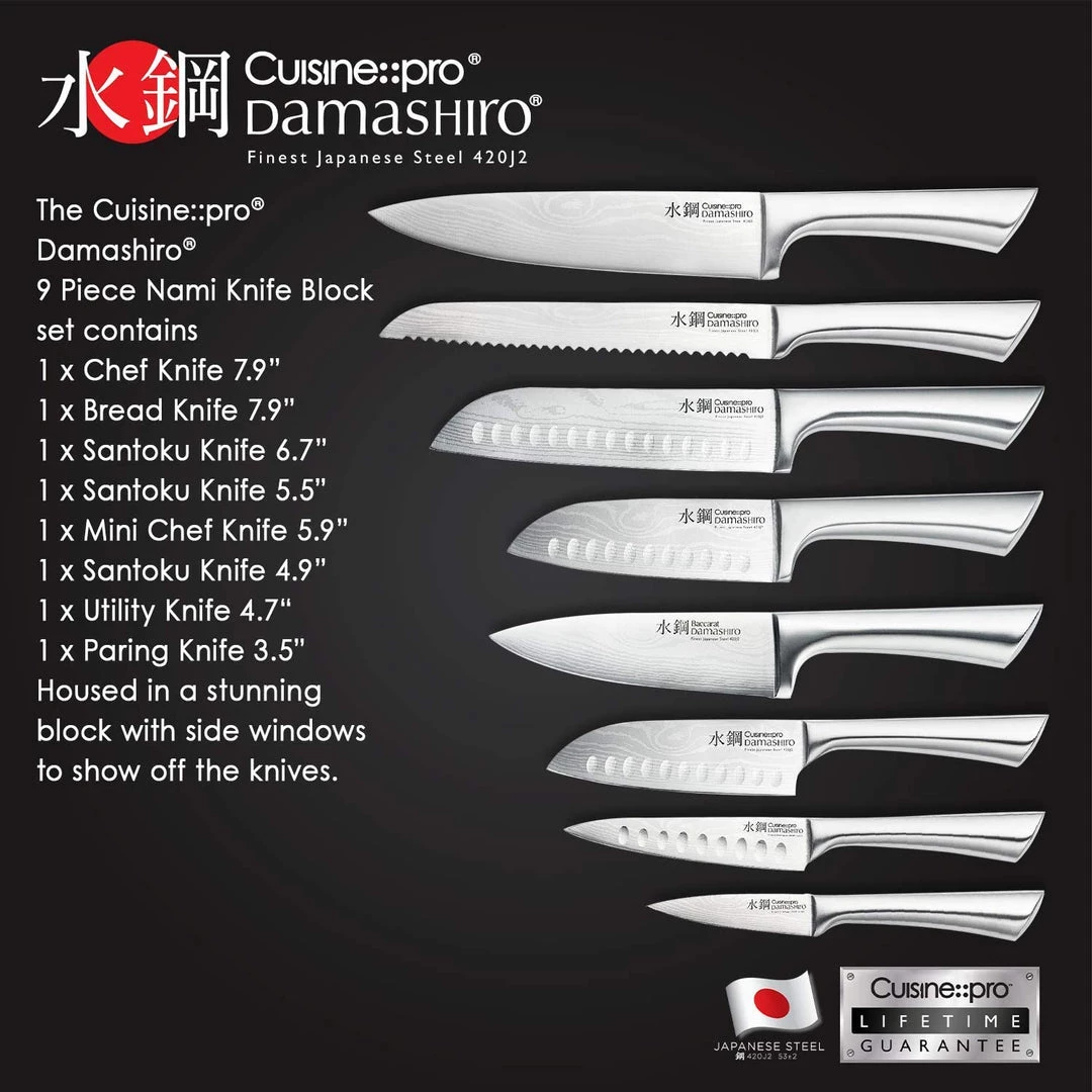 - Cuisine::pro Damashiro knives have been crafted from the finest Japanese Steel 420J2 and ice hardened ensuring for blade strength and durability. The Damashiro range features a distinctive Damascus inspired tradition and traditional Japanese handle design favoured by Japanese craftsman samurai makers.