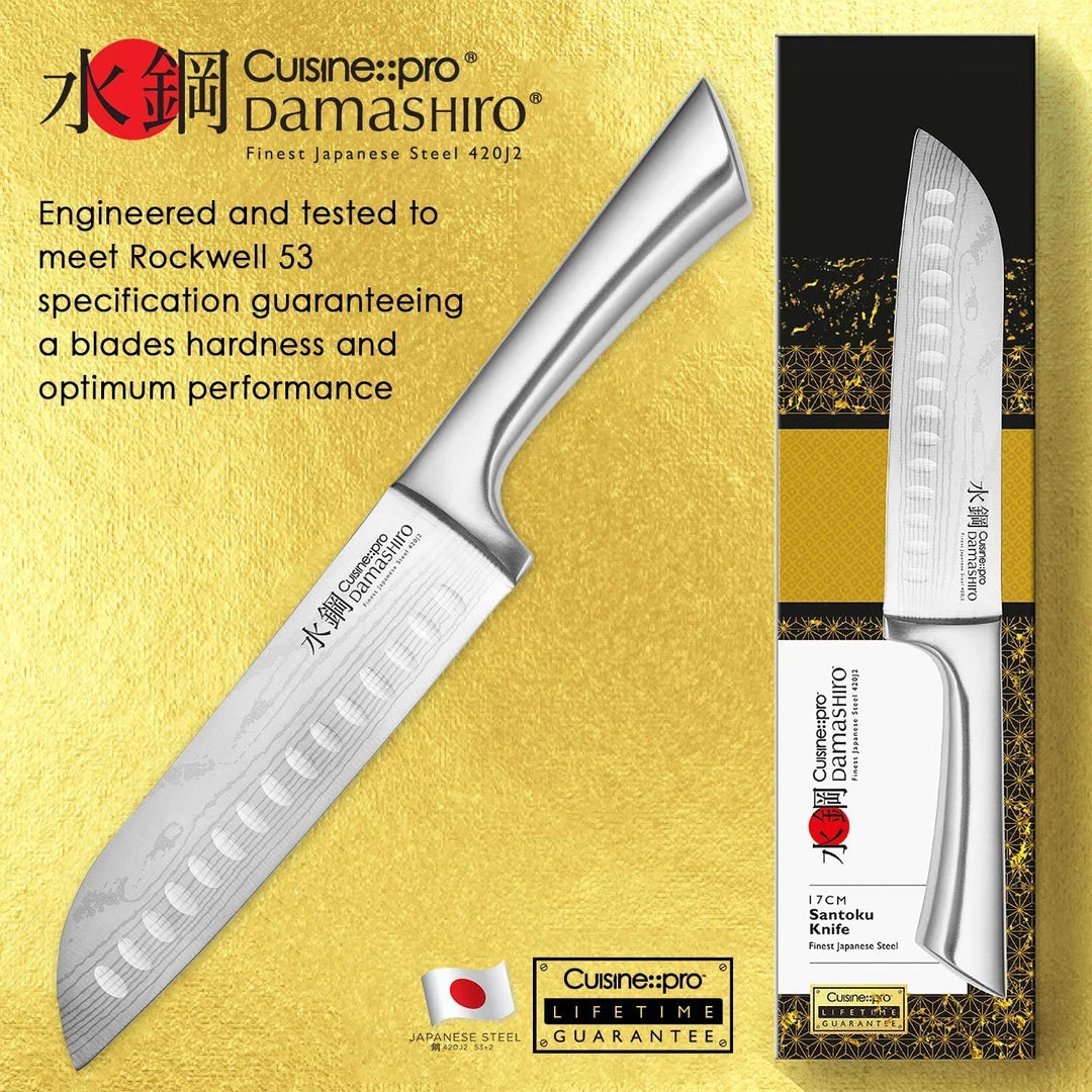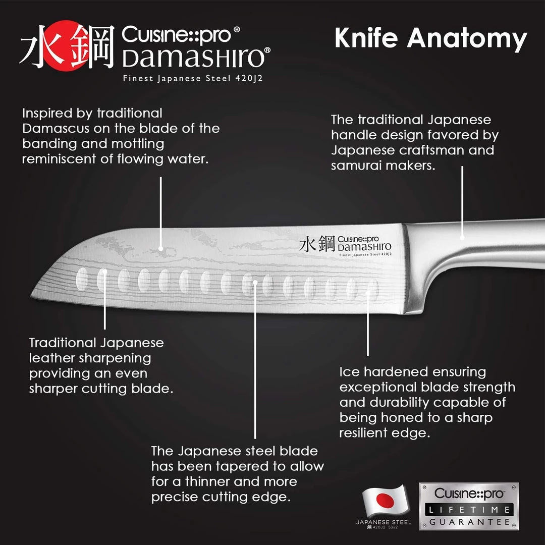 - Cuisine::pro Damashiro knives have been crafted from the finest Japanese Steel 420J2 and ice hardened ensuring for blade strength and durability. The Damashiro range features a distinctive Damascus inspired tradition and traditional Japanese handle design favoured by Japanese craftsman samurai makers.