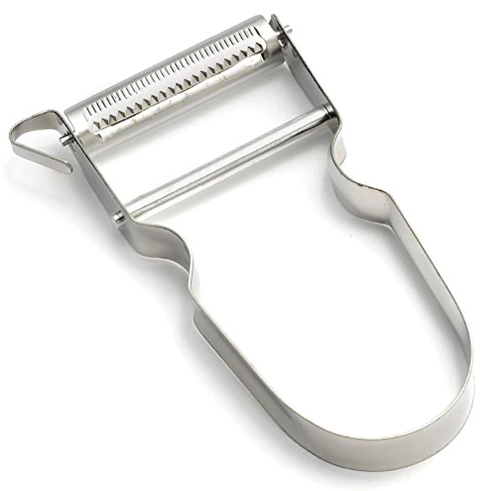 Swiss Design, robust frame, unparalleled performance No bells, no whistles, just clean lines and a precision, power cut only a Swiss designed instrument can offer. The main focus for Culina Stainless Steel Shredder remains its high efficiency in peeling consistently to get the task well done. Geared to professionals as well as everyday users at home, it is a versatile, tool suited to utilitarian and repeated use. The power shredder doubles as peeler slippery, fuzzy or coarse texture in one instantaneous, easy motion. It also boasts a bud/eyelet remover which comes handy with potatoes or pineapples amongst other things. Built to last: Strong, durable, no-strain swivel blades Because they bear the brunt of the task, the extra sharp swivel blades were built to last. Culina Stainless Steel Peeler is outfitted with a double edge boasting sharp power notches on one side to effectively cut into strips and on the other, micro-serrated teeth ready to sink into the produce’s skin and glide smoothly to achieve quick, efficient peeling. Made of a rust-resistant, high grade steel, it’s engineered to effectively fight corrosion and outlast any kitchen essential in your drawer. The handle is the perfect fit in any size hand, ensuring a non-slip grip and great comfort and dexterity whether right or left-handed. People with arthritis or stiff fingers are sure to rave about peeling effortlessly, no strain, no pain. For plant-based nutrition, vegans or families looking to increase veggie intakes! Peel away, fill your plates with tasty, colorful garnishes and strings of crudite and reap the immediate health benefits: Korean Kimchi, zucchini spaghetti or coleslaw recipes with their shredded cabbage, radish, carrots, garlic and other veggies will have no secrets for you