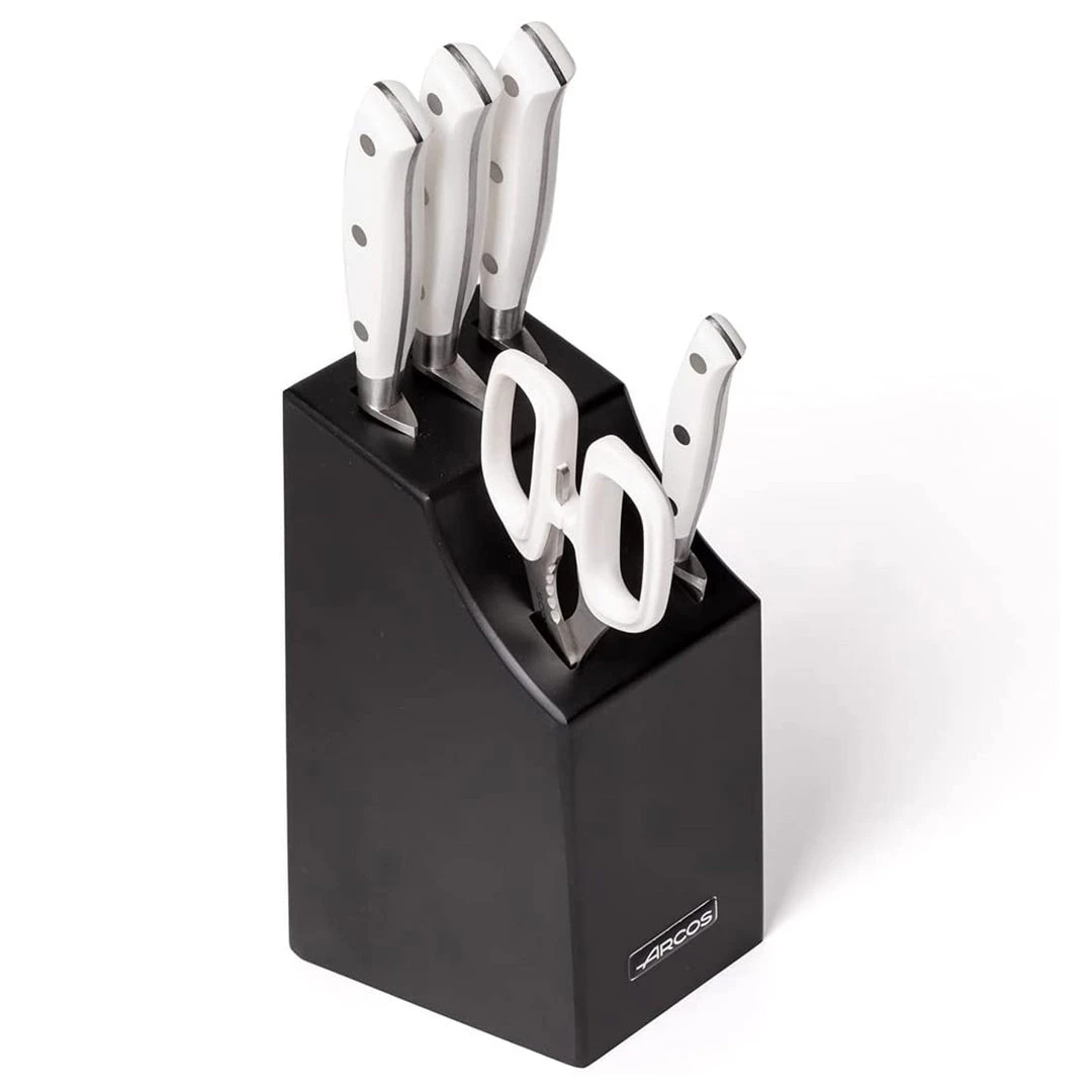 - Scissors + Paring Knife + Chef Knife 150 mm (6″) + Chef Knife 200 mm (8″) + Bread Knife