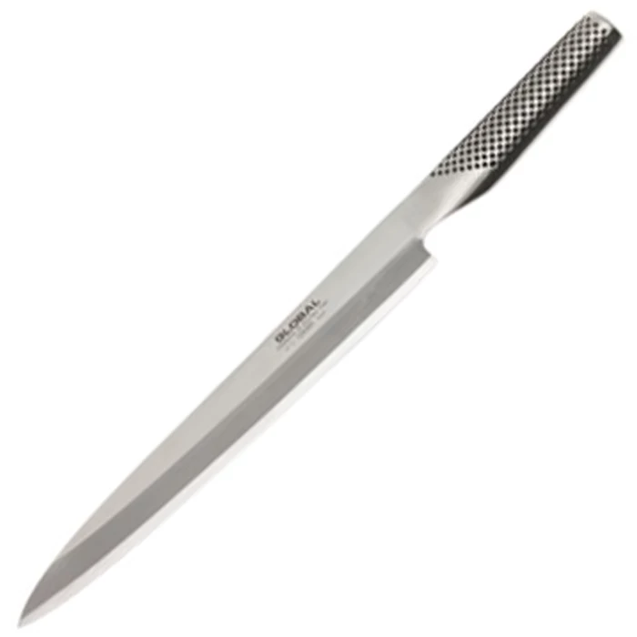 Longer bladed Yanagi Sashimi Knife with a weighted hollow handle.