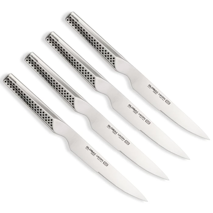 Details like a dual-surface handle, an ambidextrous thumb rest and a thicker blade with a noticeably sharper edge are indications of Ukon’s technical innovation. Like all Global knives, the cutlery offers perfect balance and seamless construction.