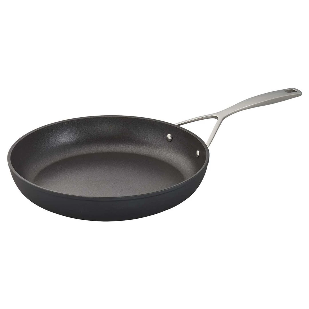 AluPro works all cooking surfaces – gas, electric, glass, and induction. TriplInduc technology by Demeyere makes this aluminum pan induction compatible and 30% more efficient than competitors. The durable Ti-X non-stick coating makes this pan oven and broiler safe up to 500F.