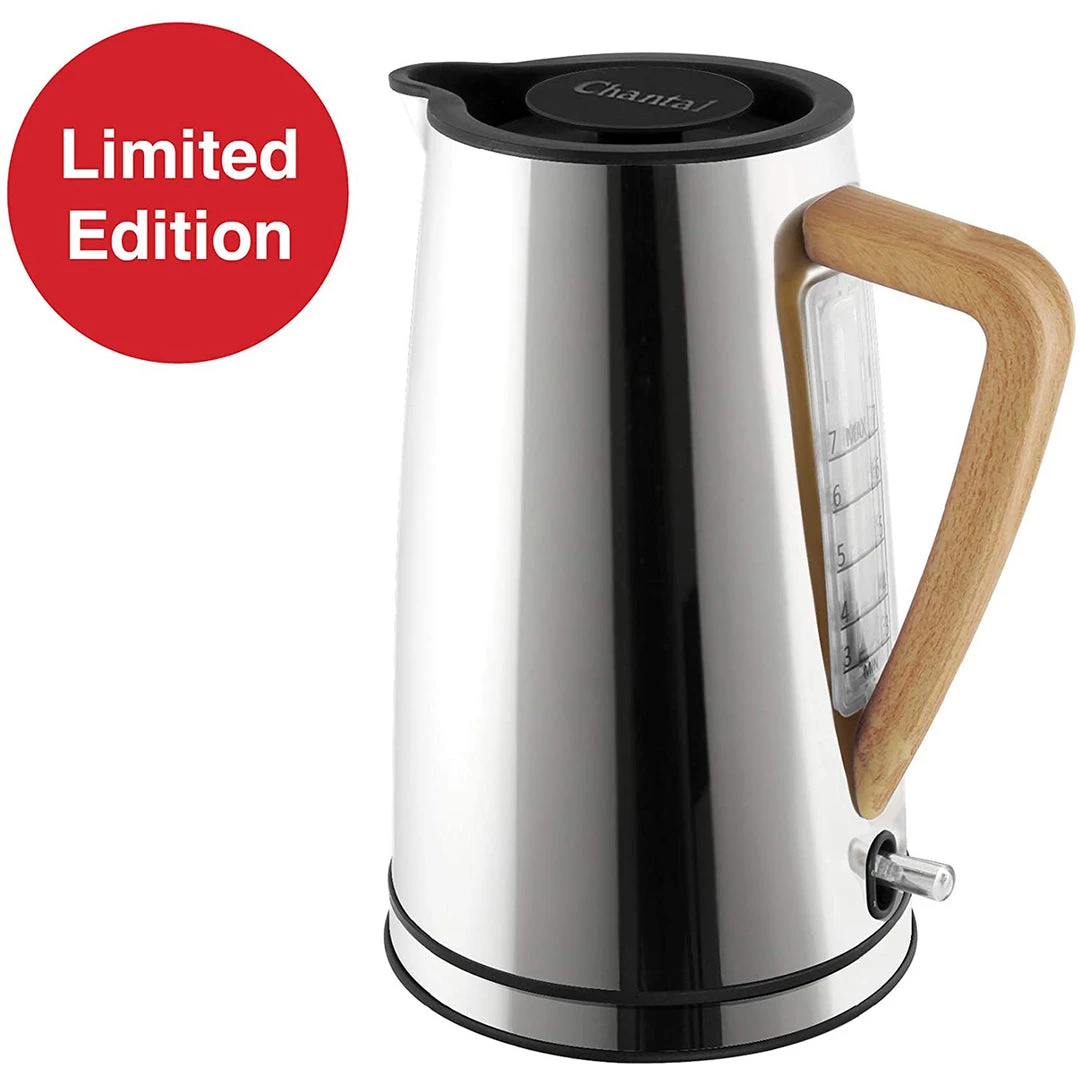 The Oslo eKettle electric water kettle with clean lines and an angled resin handle printed with a blonde wood pattern results in a design that is distinctly Scandinavian. A pronounced water level window makes it easy to know how much water remains in the kettle without removing the lid. Lid and handle both stay cool to the touch when boiling water. Kettle removes from base enabling you to take it wherever you need to