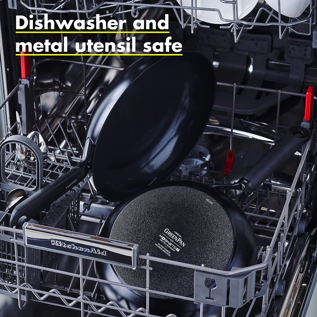 - Metal utensil safe, this collection’s diamond-reinforced coating is incredibly durable