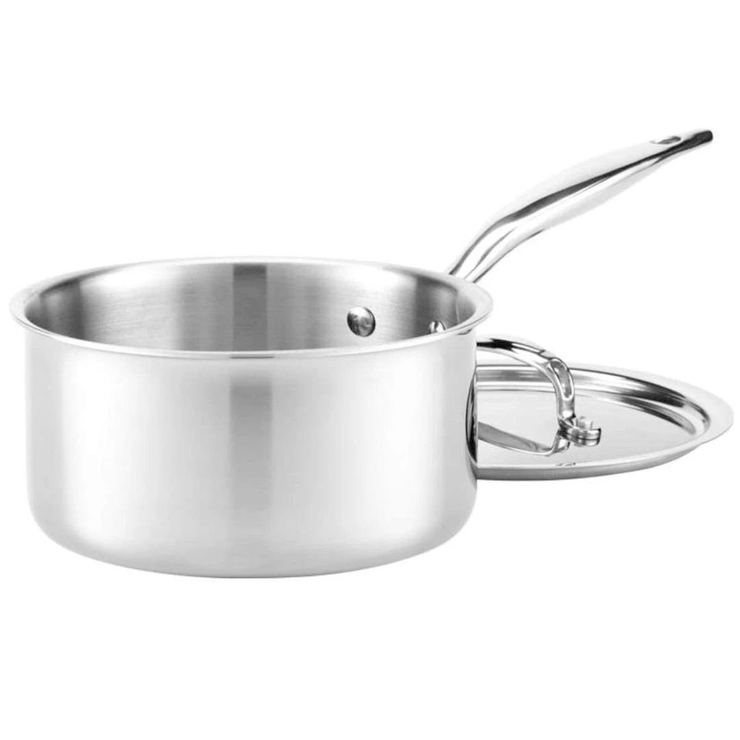- 5 PLY CONSTRUCTION: We use multiple layers of metal including 3 layers of aluminum for enhanced heat conductivity and durability. The exterior titanium-strengthened 439 steel will maintain its luster for a lifetime of cooking. Use on any type of stovetop including induction and in the oven.