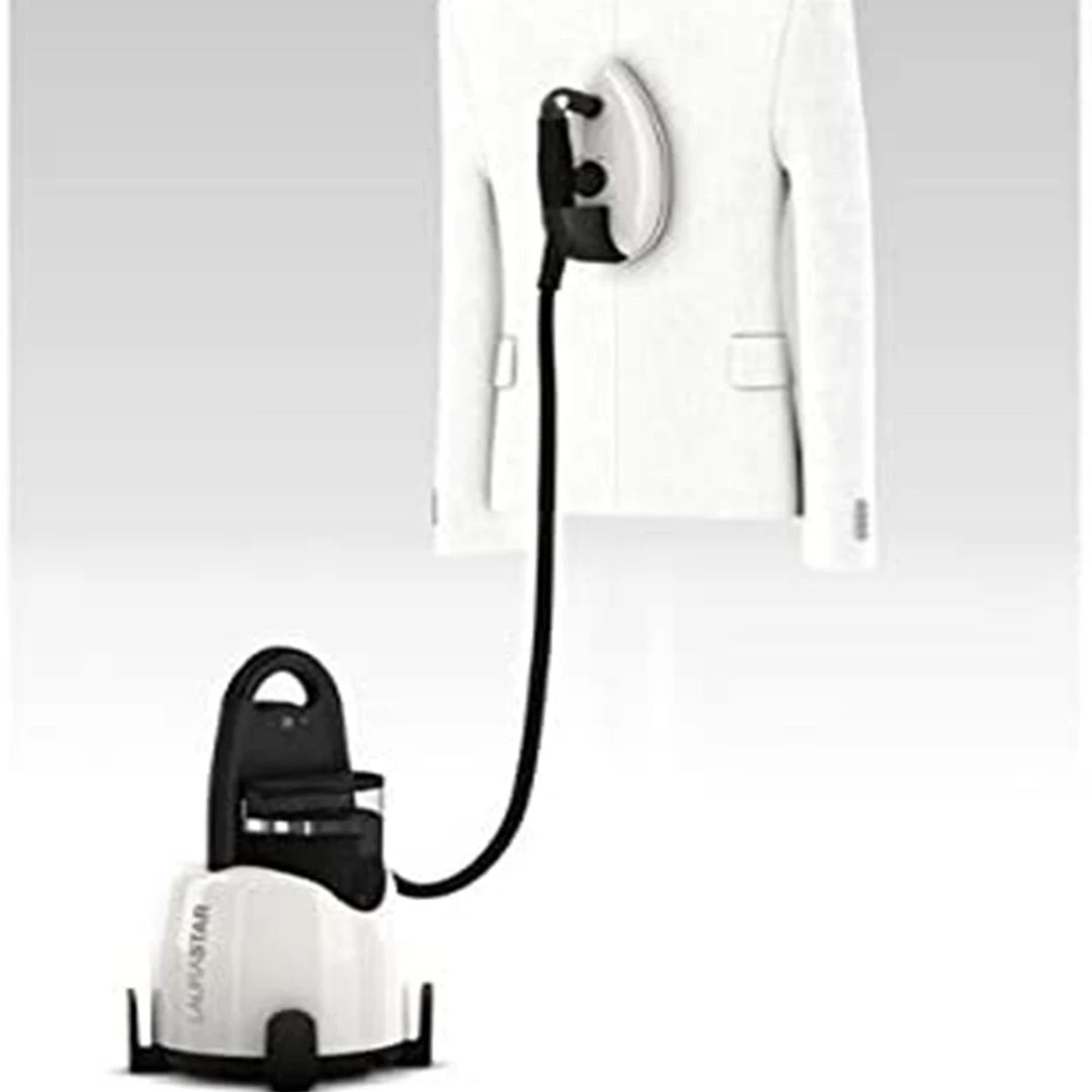 Laurastar Lift Plus Pure White steam generator comes with a special heat-resistant iron mat, a protective soleplate for delicate fabrics, a steam cord holder and an anti-scale water filter cartridge. It has a 2-year guarantee (only for Switzerland and European Union).
