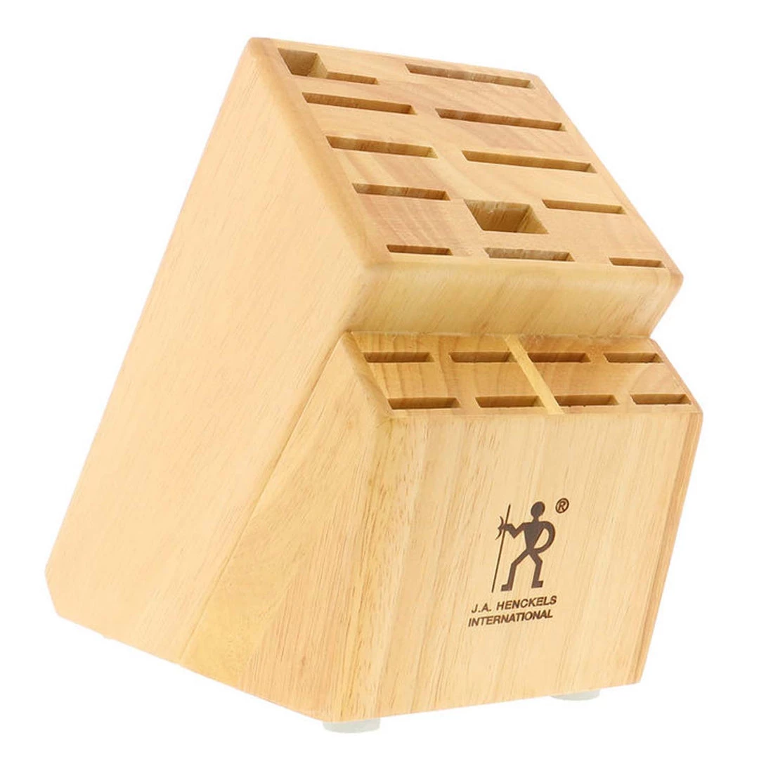 The Henckels International Forged Premio 18-pc Knife Block Set has a knife to handle every kitchen task. Fabricated from high-quality German stainless steel, the fine-edge blades are perfect for precision cuts. The all-rounder 8″ Chef’s Knife is ideal for chopping herbs and dicing onions while the 5″ Serrated Utility Knife cleanly slices through tomatoes. Perfectly peel apples with the small 3″ Paring Knife.