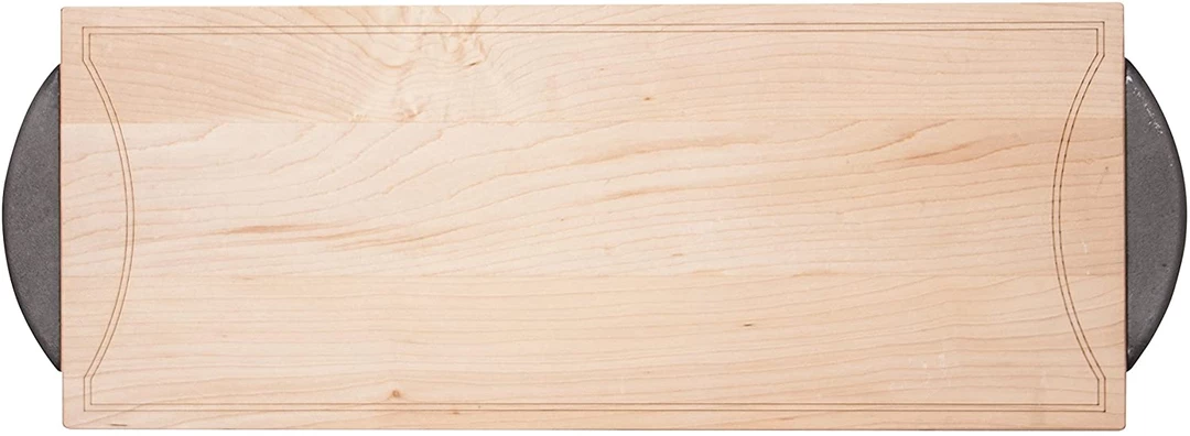- Cast metal handles offer a great contrast to the light color and grain patterns of the maple board