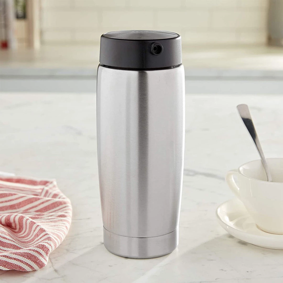 - The elegantly shaped, stainless steel vacuum insulated milk container is a practical addition for all lovers of milk specialities. Thanks to its familiar tried-and-tested principle, it holds 20 oz. and keeps the milk cool throughout the day.