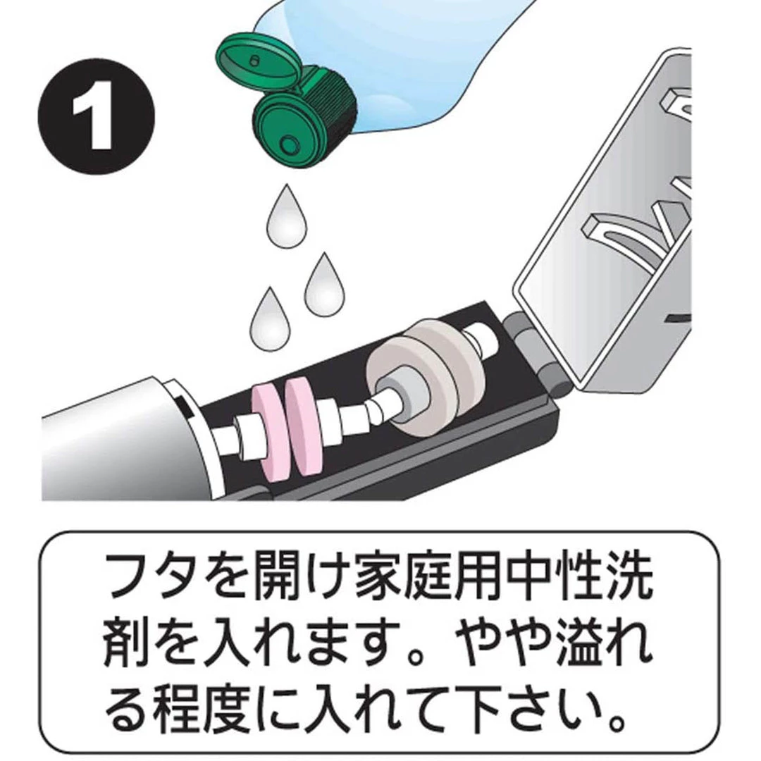 - Two wheels: one ceramic for sharpening and one diamond for polishing