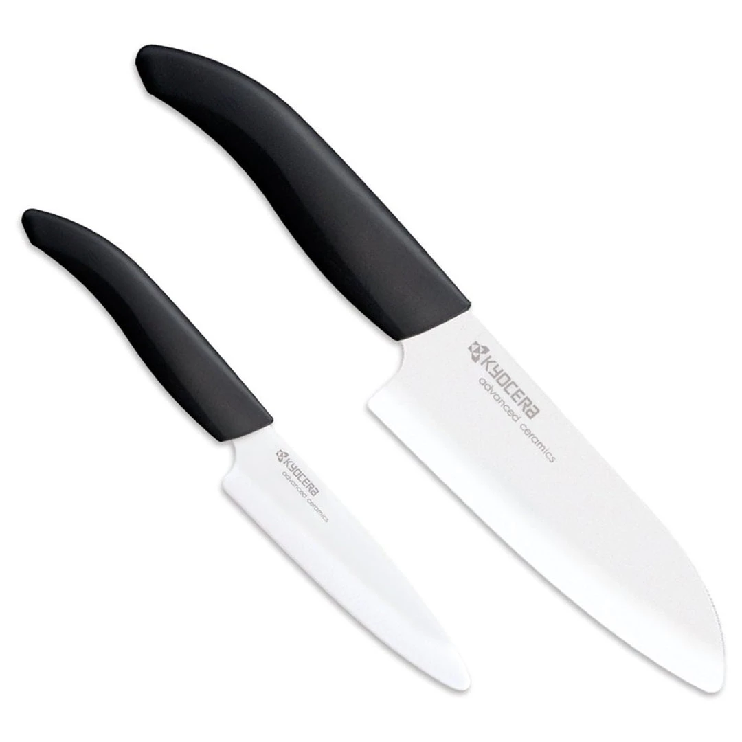 This practical and beautiful set features two of our bestselling ceramic knives: A 5.5” Santoku and a 3” paring knife. Perfect for the home cook, these knives will be used daily, quickly becoming favorites in the kitchen. Ideal for fruits, vegetables and boneless meats. Use the Santoku knife for slicing, dicing, mincing, julienning and the paring knife for cutting, trimming, seeding and peeling small fruits and vegetables. Packaged in an acetate box. The perfect gift.