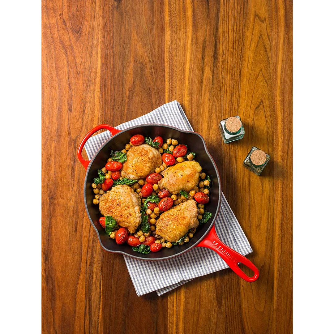 - Enameled cast-iron construction provides superior heat retention. Dishwasher safe for fast, convenient cleanup