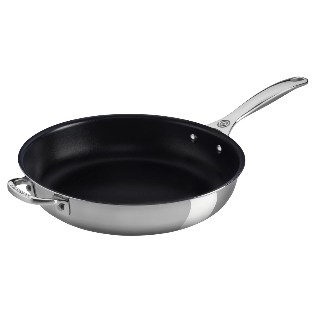 A durable nonstick coaing allows for cooking with minimal oil and fat, while providing superior food release for quick and easy cleanup. Tri-ply construction ensures even heating, and makes this pan ideal for many kitchen tasks, from searing and sauteing to pan-frying and simmering.