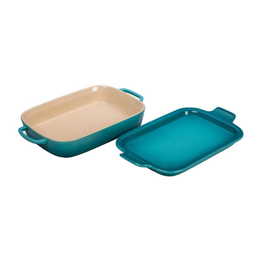 Le Creuset stoneware casseroles offer superior, highly functional performance in the oven and at the table. These durable stoneware dishes include tight-fitting lids and easy-to-grip grooved side handles, and are designed for a multitude of kitchen tasks, whether baking desserts, oven-roasting meats, broiling fish or simply marinating before cooking.