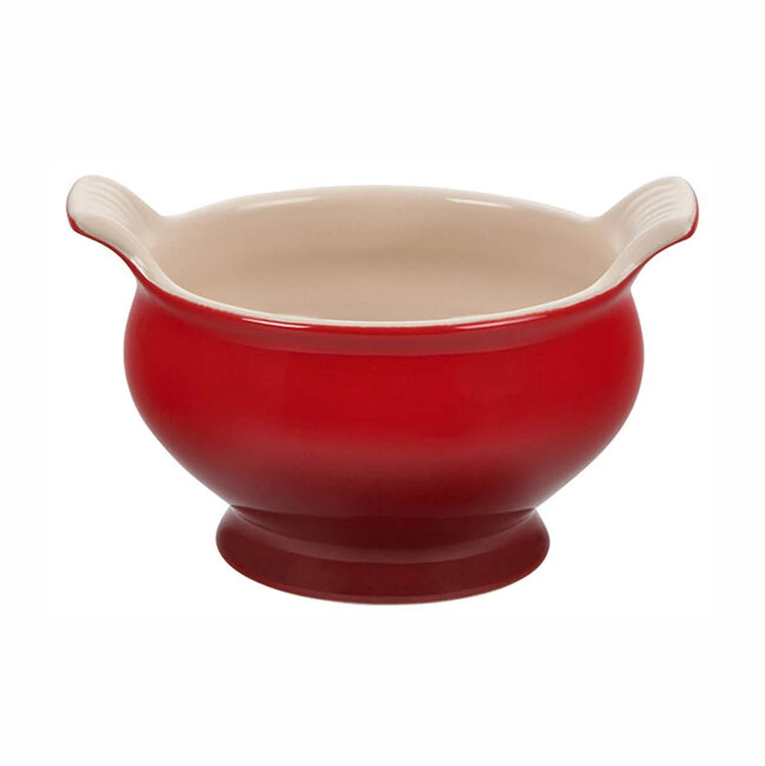 Serve a delicious soup with this soup bowl from Le Creuset. Made from stoneware, this vibrant dish features a scratch, chip, and stain-resistant glaze that provides easy cleaning and long-lasting performance. The non-porous stoneware blocks moisture absorption for exceptional strength and provides superior heat retention to keep food warm at the table while serving. Broiler, oven, microwave, and dishwasher safe, this soup bowl will quickly become a staple in your kitchen.