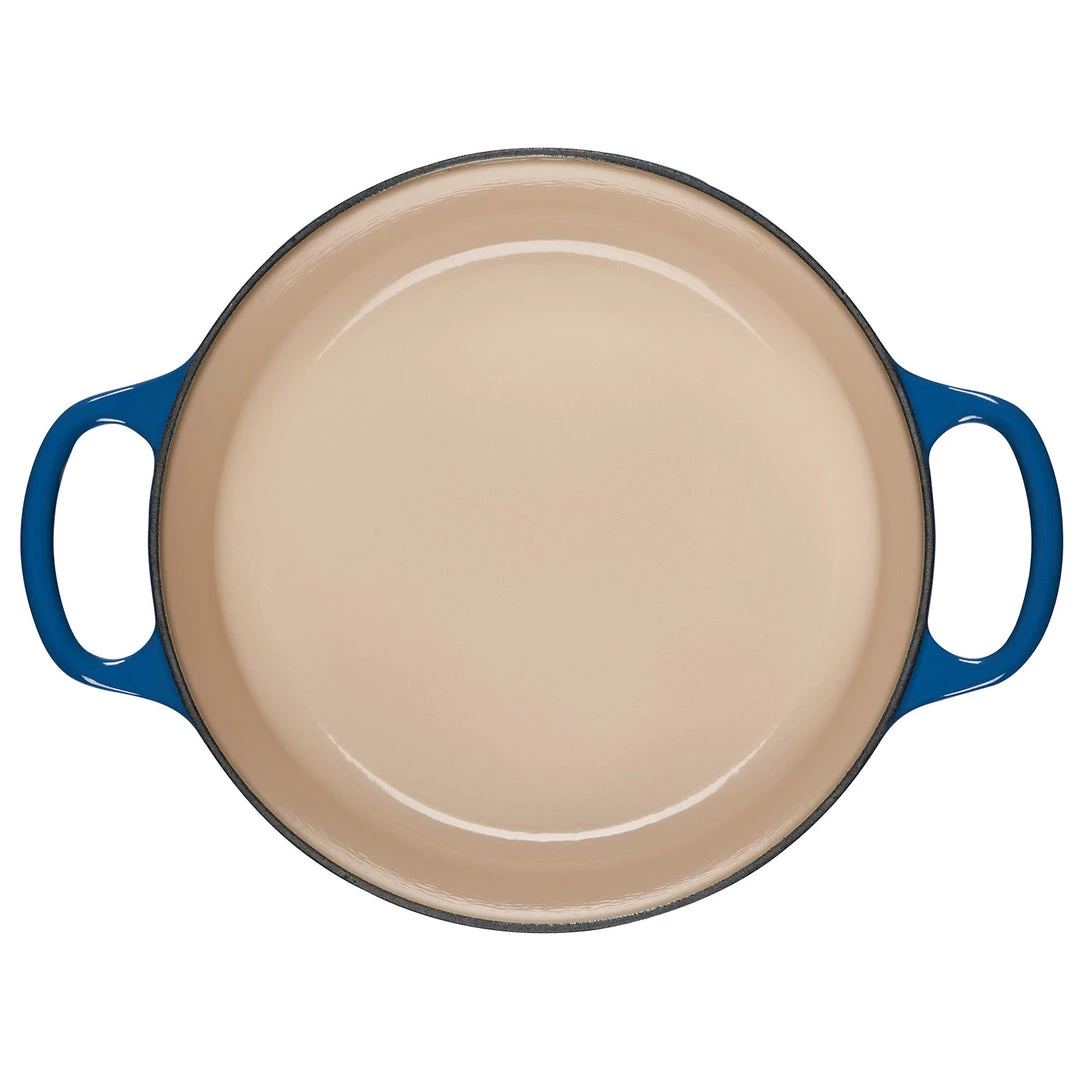 - Sand-colored interior enamel has a smooth finish that promotes caramelization, prevents sticking and resists stains