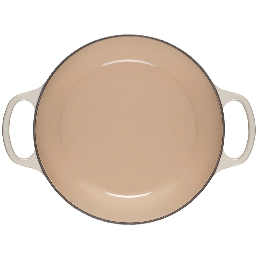 - Light colored smooth interior enamel allows easy monitoring of cooking progress