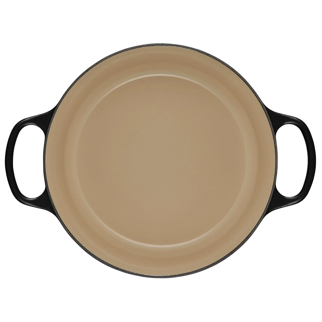 - Sand-colored interior enamel has a smooth finish that promotes caramelization, prevents sticking and resists stains