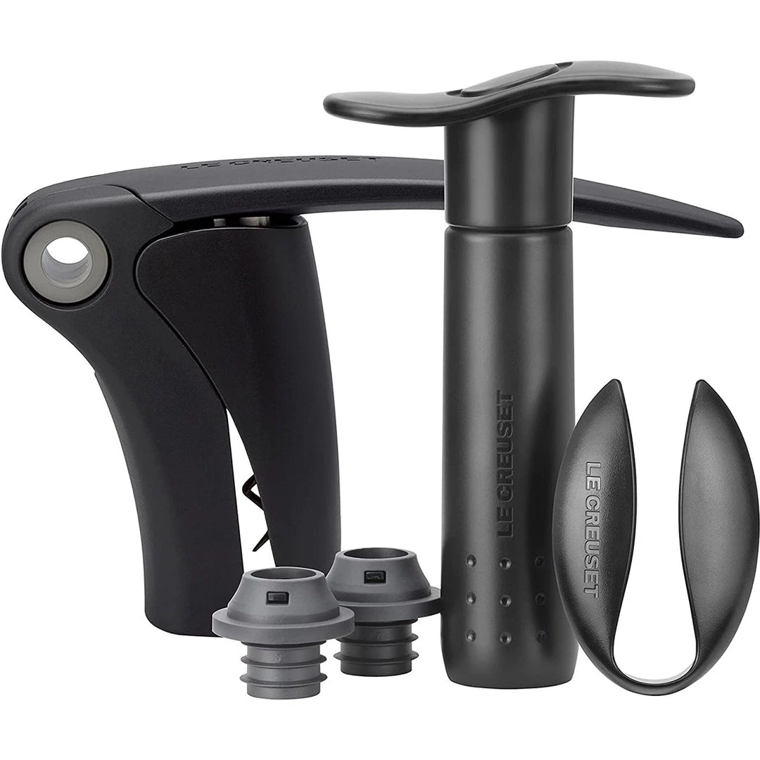The Wine Tools 5pc Giftable set is perfect for any wine lover. Set includes a compact Lever, Foilcutter, and Wine Pump with 2 stoppers.
